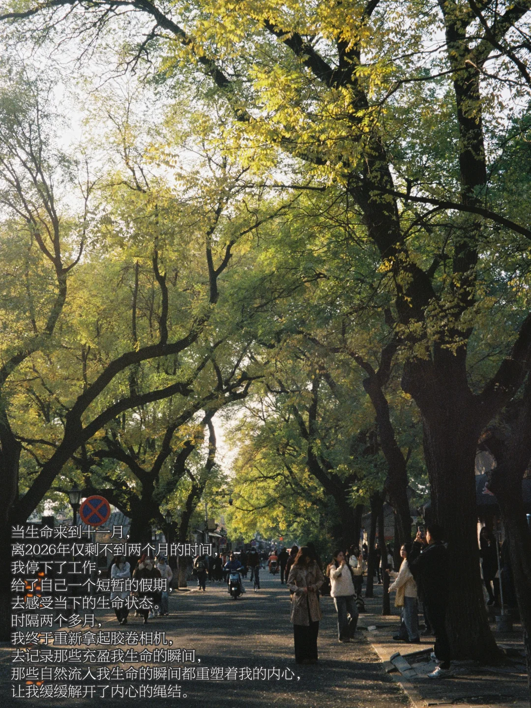 当生命来到十一月,我停下了工作,给了自己一个短暂的假期,去感受当下的生命状态。时隔两个多月,我重新拿起胶卷相机,去记录那些充盈我生命的瞬间,那些自然流入我生命的瞬间都重塑着我的内心,让我缓缓解开了内心的绳结。