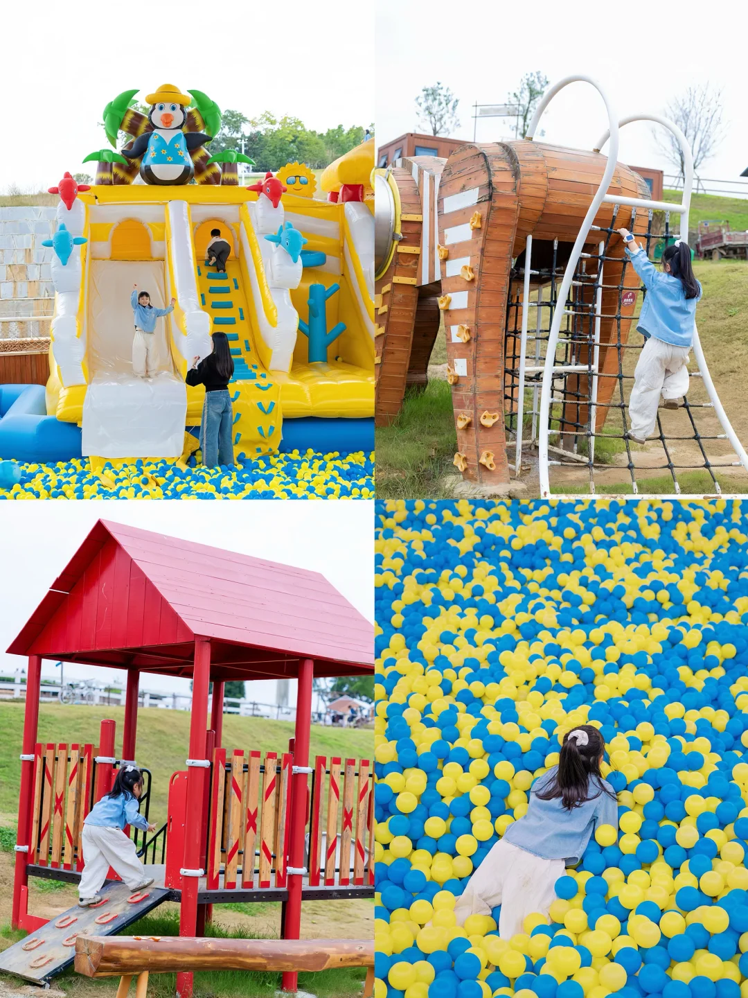 牧场的海洋球池加滑梯攀爬网组合,娃看到直接开启了撒欢模式,老母亲终于可以坐下来休息下了