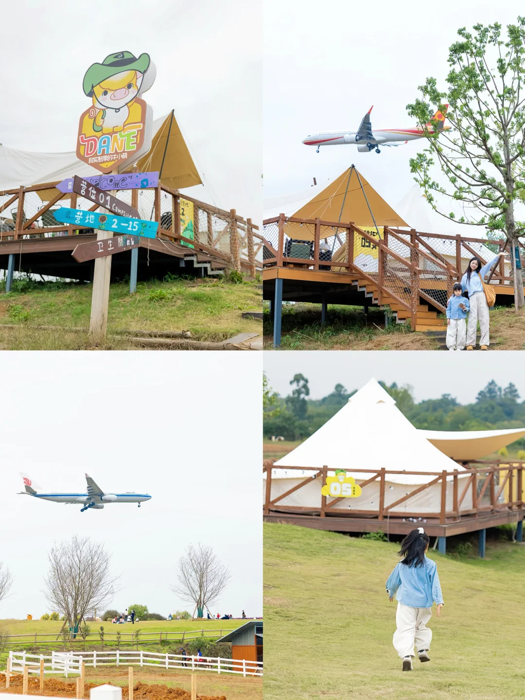 小火车会绕着超大草坪开一圈,吹着风看着牧场风景太惬意啦,沿途还能感受飞机低空划过哦