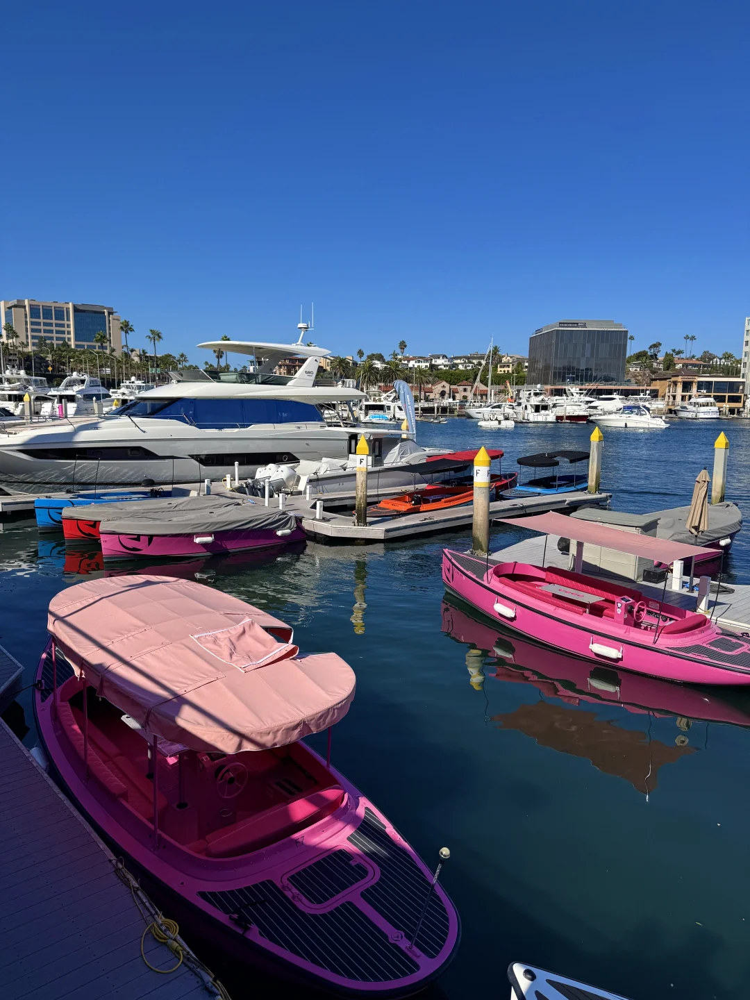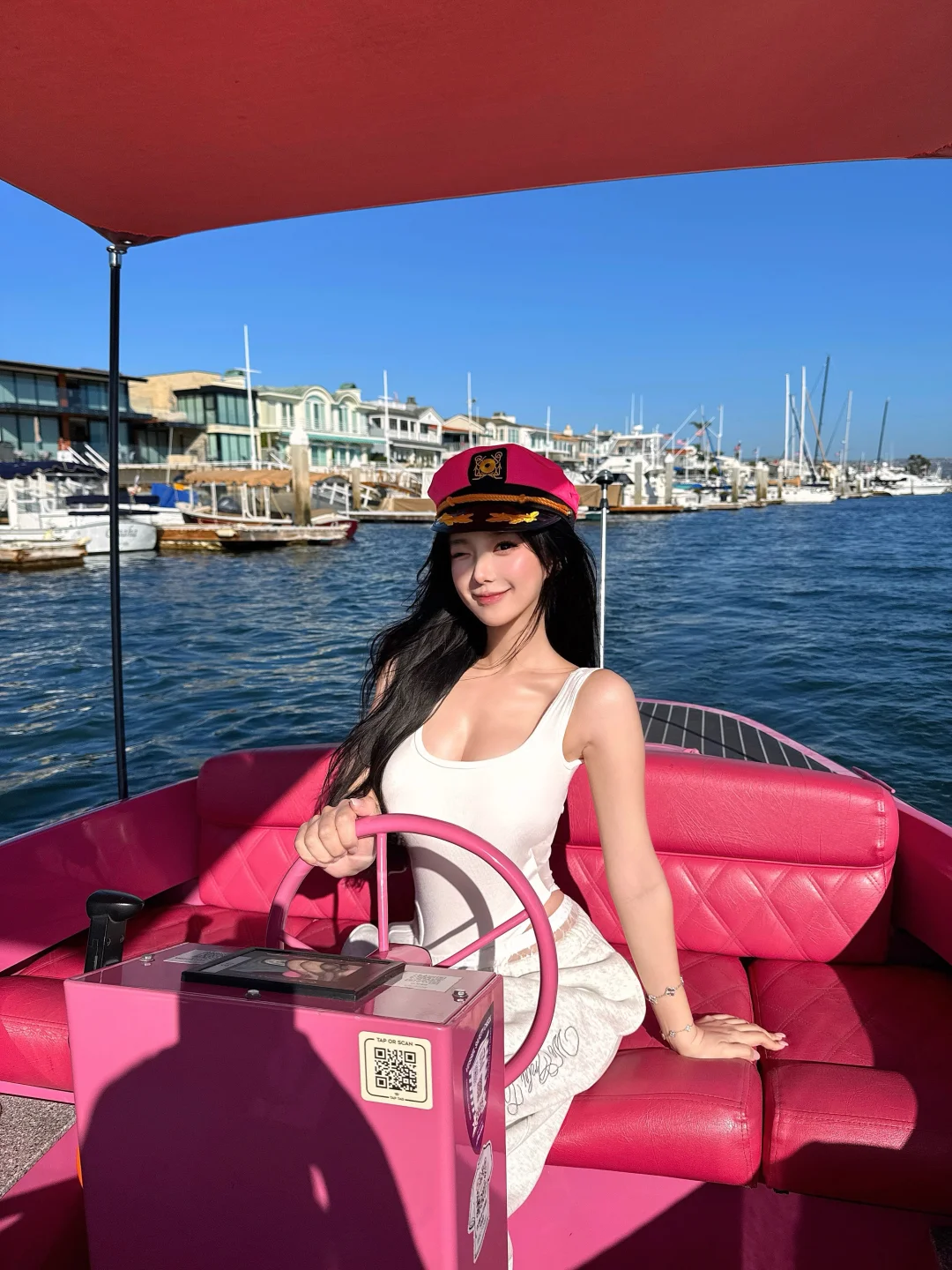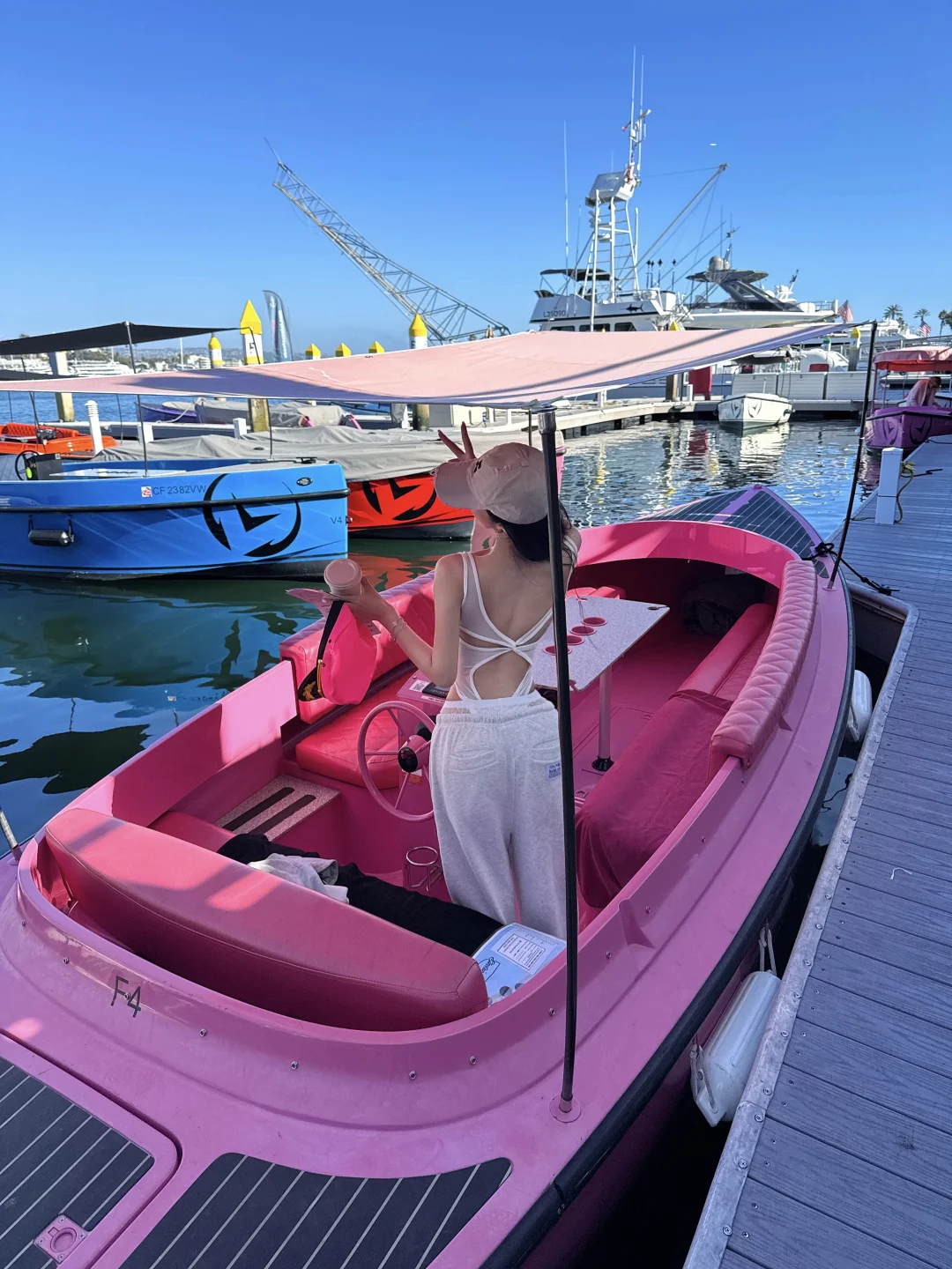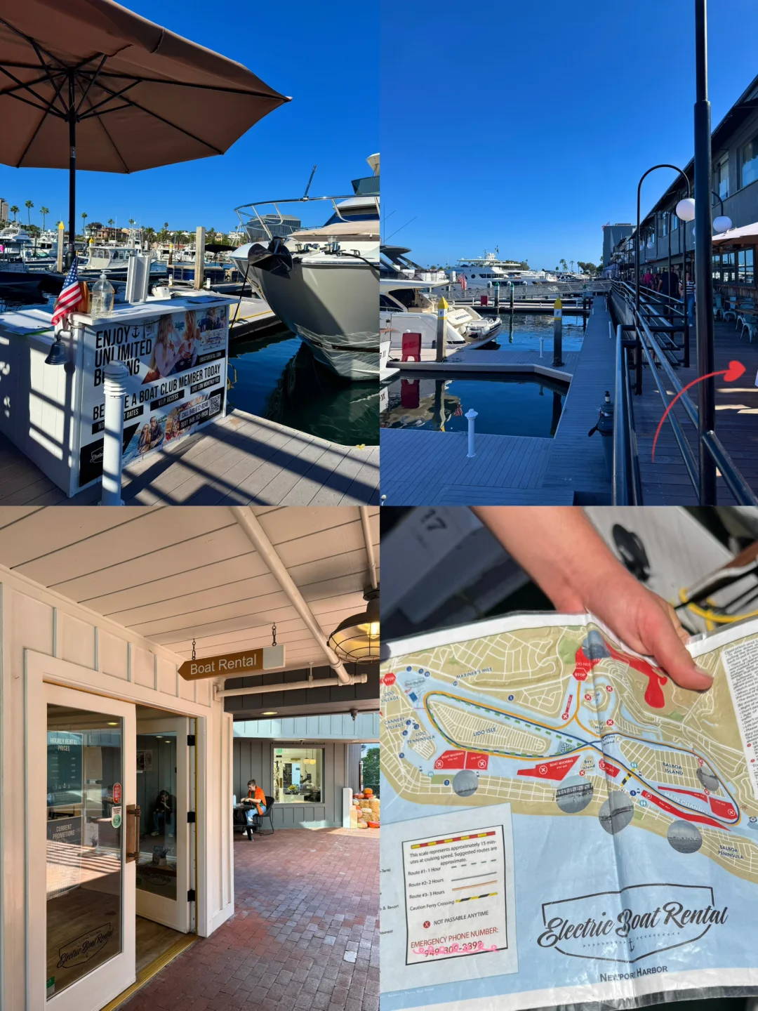 这次来洛杉矶Newport Beach一日游在Lito Village闲逛 看到码头停了几艘五颜六色超可爱的小船 心想这么好的天气不出海简直太浪费了! 于是收获了一场超chill的电动船体验[哇R] 自己开船穿梭在绝美蓝色海港 近距离看千万豪宅和游艇们 赚钱又更有动力了![买爆R] - 💙感受: 我们下午4点登船,光线柔和超级出片! 由于时间有点赶,只租了一小时 可以8字形绕一圈回来(如最后一张图的地图所示) 电动船操作超简单,无需任何驾驶经验 像开玩具一样自由探索整个纽波特港 想停就停,想拍就拍📸 简直太爽咯[派对R] - 可以自带食物和饮料上船 还可以带25磅以下的宠物(要加收宠物清洁费用) 非常适合周末租一下午 在船上和姐妹们开个海上下午茶 party 虽说这个电动小船最多可容纳10人 但我觉得超过4个人就感觉有点拥挤了 - 📝 租船信息: 🕐时间:10:00-18:00 ⏰游玩时长:建议2小时起 ⚓️驾驶资格:21岁以上 💰价格:需准备好一张ID和💳用于付款(同一名字),粉色船190🔪/小时,其他的155🔪/小时 📍地址: Lido Marina Village Electric Boat Rentals 3424 Via Oporto 101, Newport Beach, CA 92663美国 - 💡Tips: 海上紫外线强,务必做好防晒 建议准备好帽子、墨镜、防晒衣 我的粉色船长帽子是租船店里买的 和粉色小船超适配!🩷 - 🌟关🐷我~带你周游世界🤠 各地攻略在主页合集 已按地区分好类便于搜索哟~ -