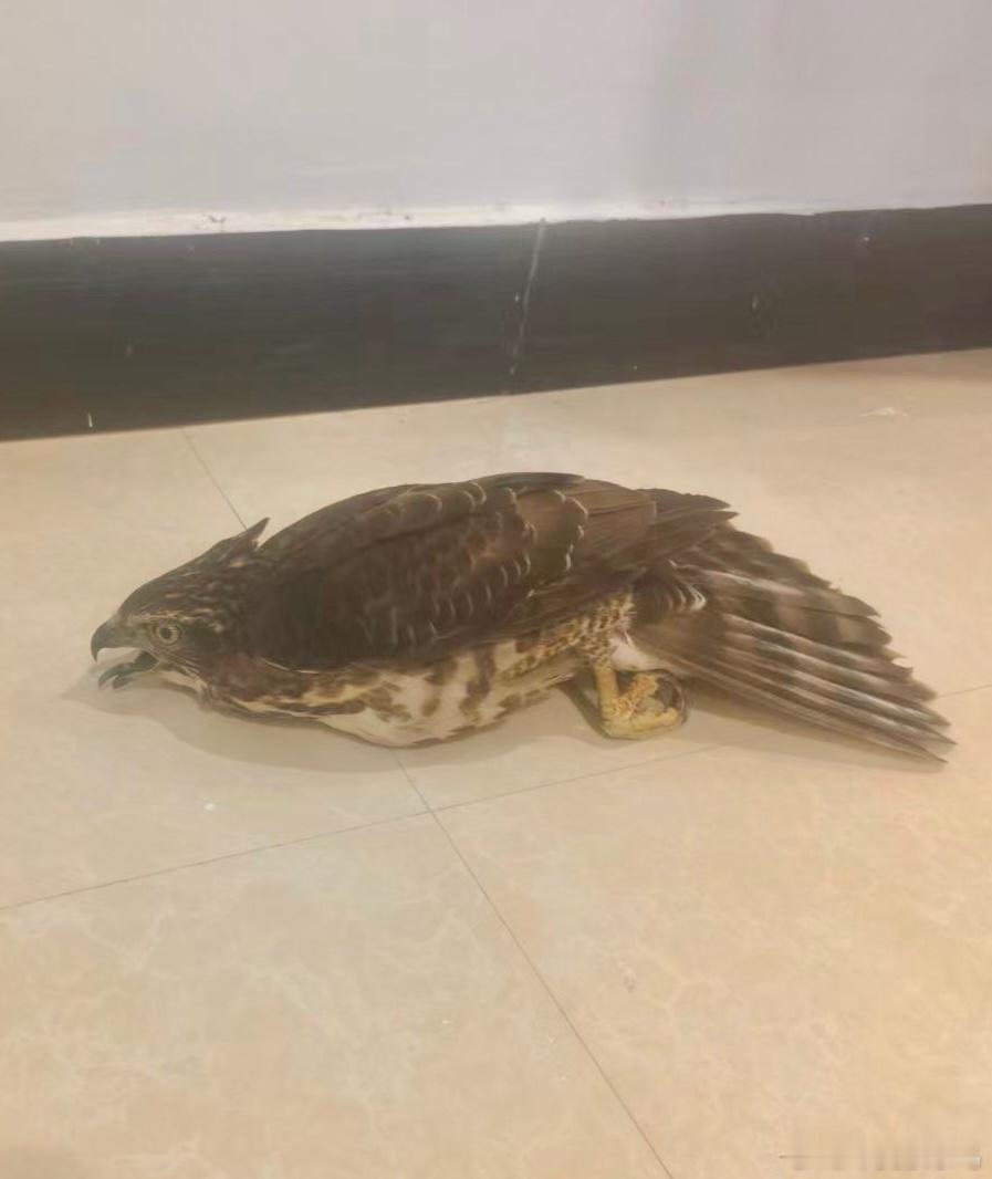 飞屋里的【凤头鹰】估计在屋子里找出口的时候撞到了,有明显的应激反应可以找个纸盒盖住 让它待会 能站起来 没什么大碍就可以带出去放飞了