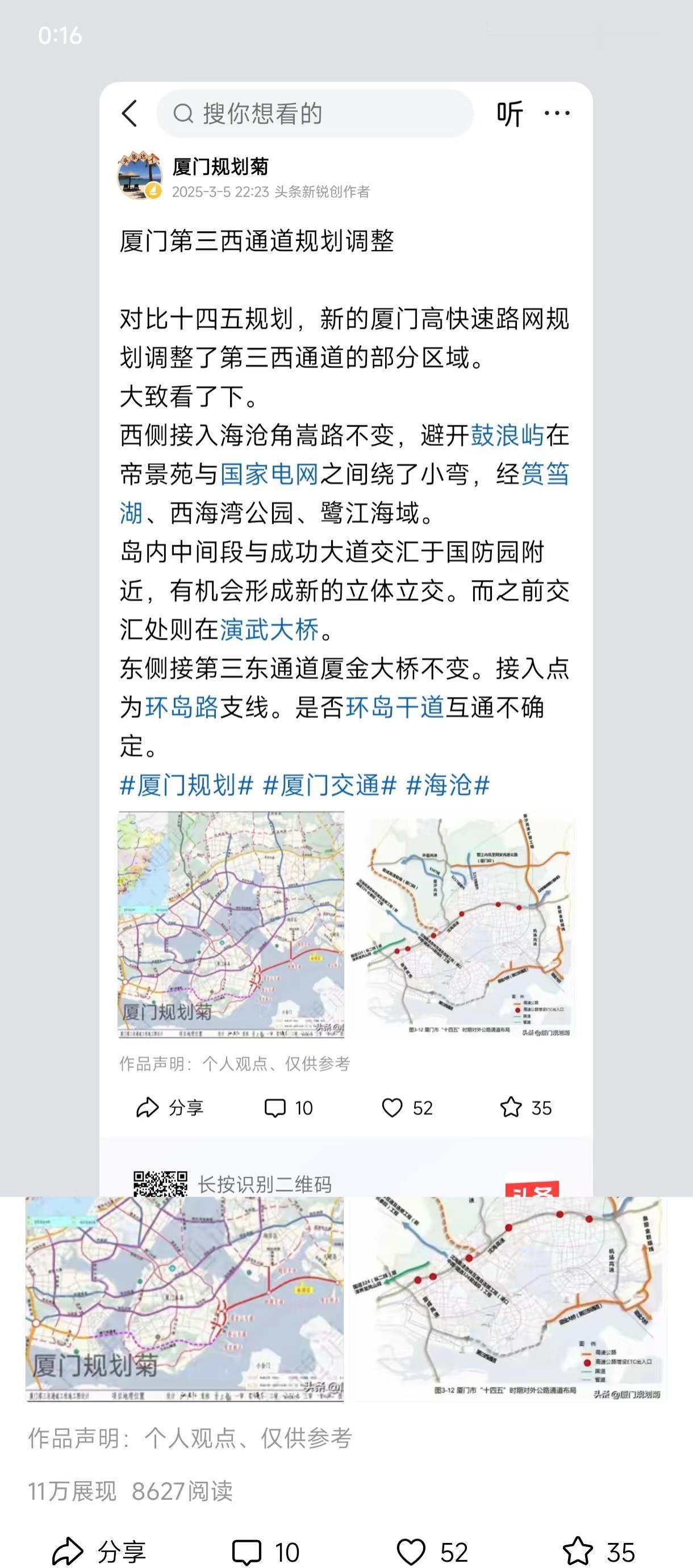 厦门第三西通道上马,同安进出岛通道靠边 G1534厦金高速海沧至厦门本岛段(厦门第三西通道)提上日程。 第三西通道个人认为一直就比同安进出岛通道重要,一个是全国交通枢纽组成部分,一个是本市交通干线。厦门金门zz正确,优先级别拔高。 跟第三东通道厦金大桥一样属于高速公路,可以拿到25%建安费的投资补助标准。 现在只算是课题研究,那什么时候建呢?时间其实很明朗,评论区来探讨。 厦门交通 海沧 金门