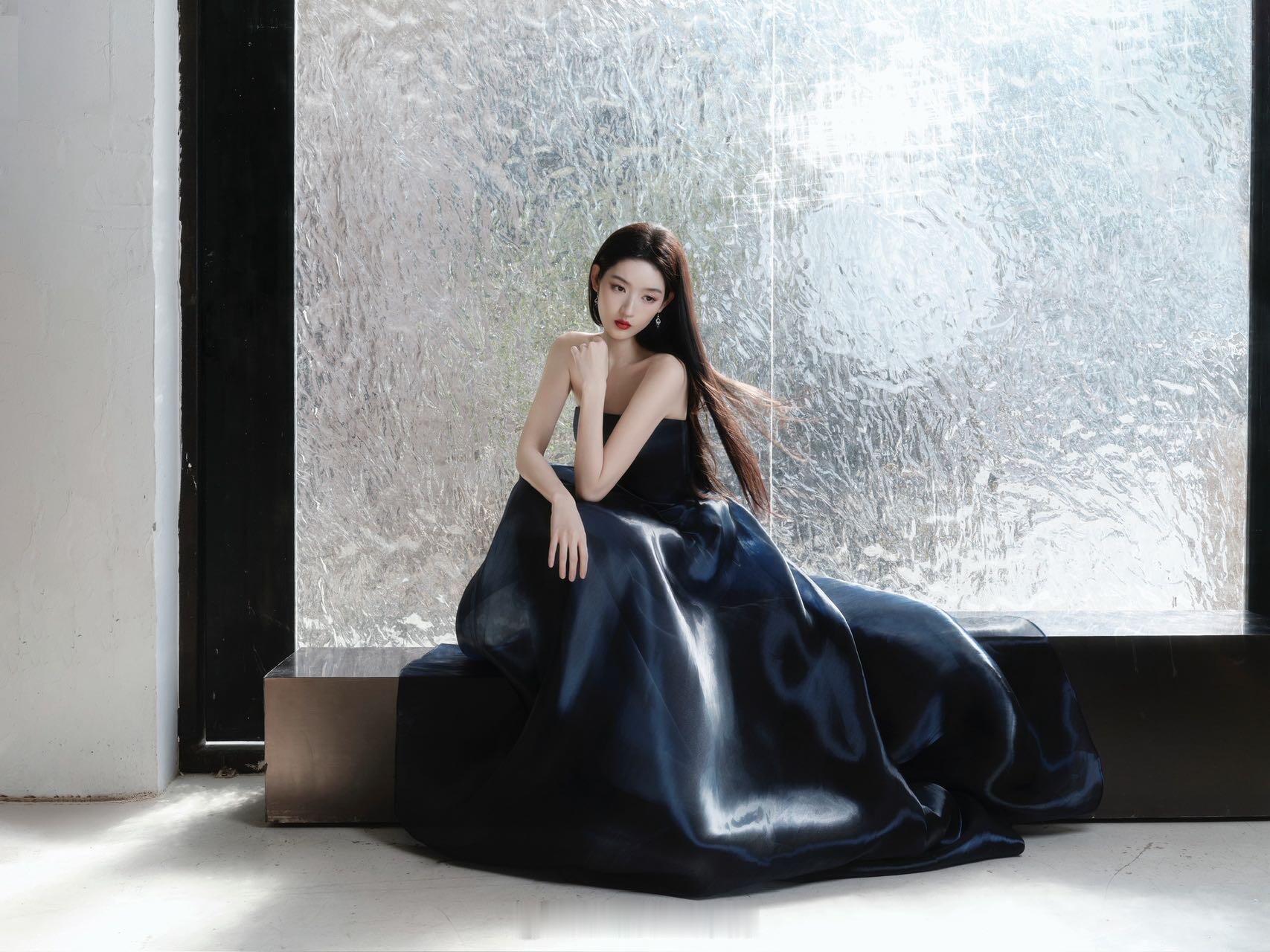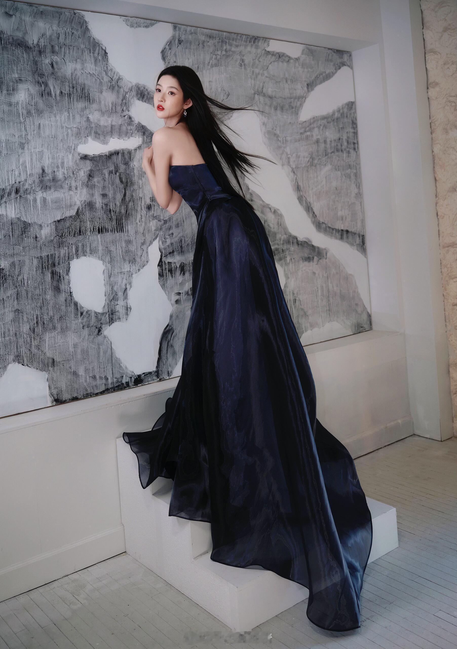 舍弃华丽珠宝反而更见真章!王玉雯深蓝长裙造型证明极致简约即是高级,所有目光聚焦在她灵动的面容与摇曳的裙裾,美得不费吹灰之力。