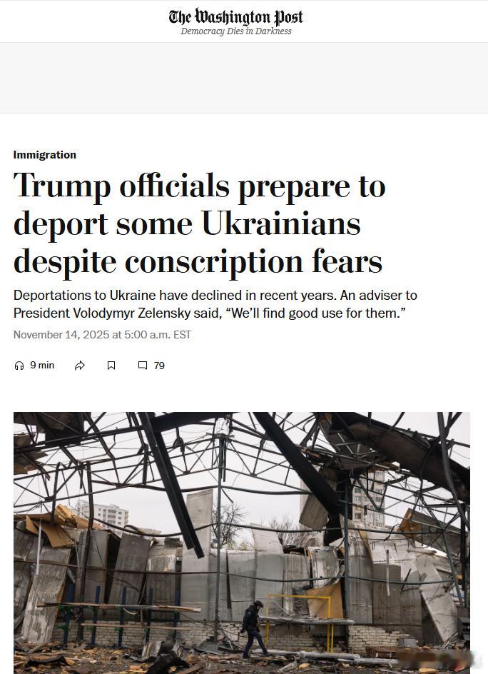 特朗普政府正准备大规模驱逐乌克兰人,泽连斯基说没关系能安置来源:华盛顿邮报柯基语:我怀疑这个安置它不正经,是不是想“安置”到前线