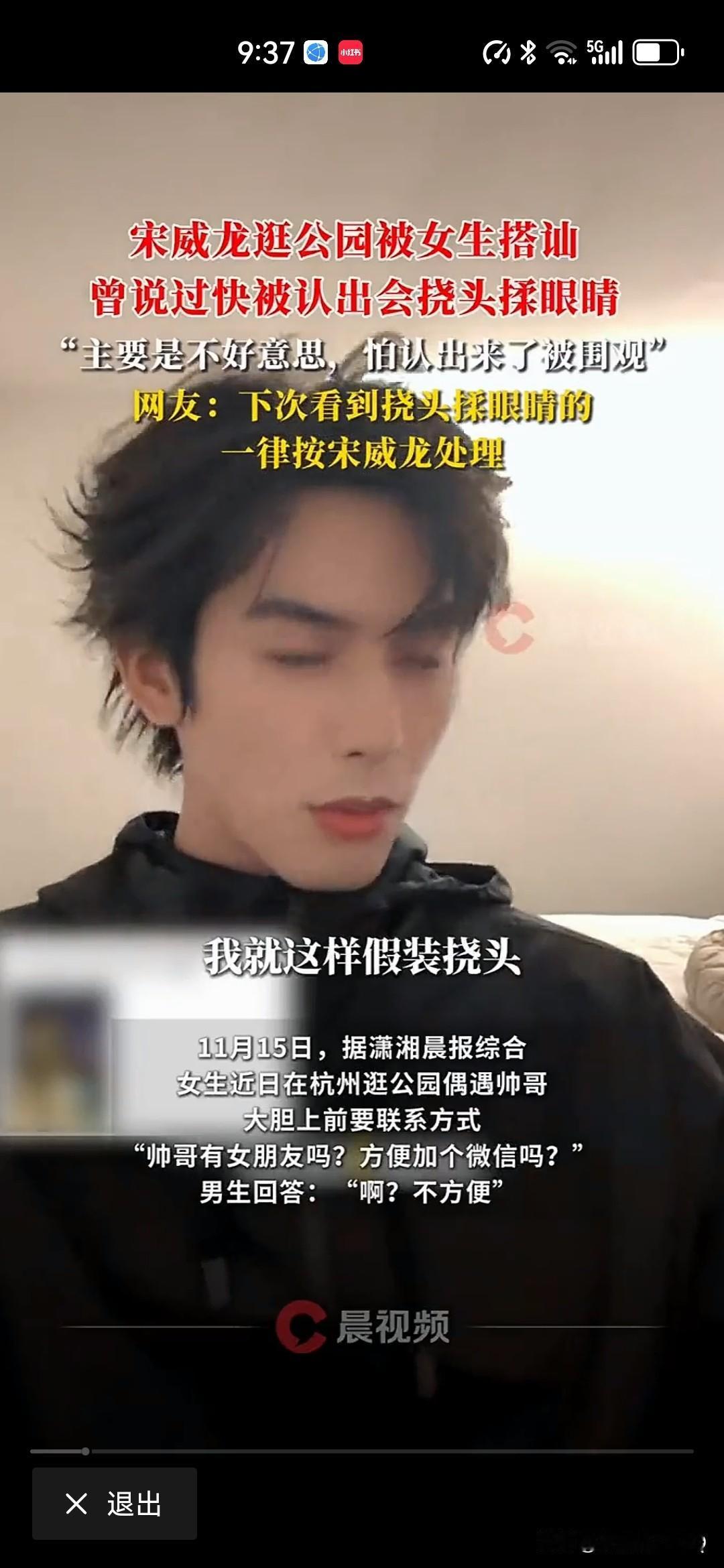如何评价宋威龙长相?宋威龙逛公园被女生搭讪!嗨,帅哥能否帮个忙,正跟朋友打赌,只要能和帅哥说几句话给他看,他就输,你不会让我失望吧?宋威龙感觉过时搭讪,正不想理会时,这个女生又说,哎呦,你很像我喜欢偶像剧哪位正能量的主角,能否赏个脸合照一下?宋不好意思拒绝,只好配合!这年代帅气就是流量代码!