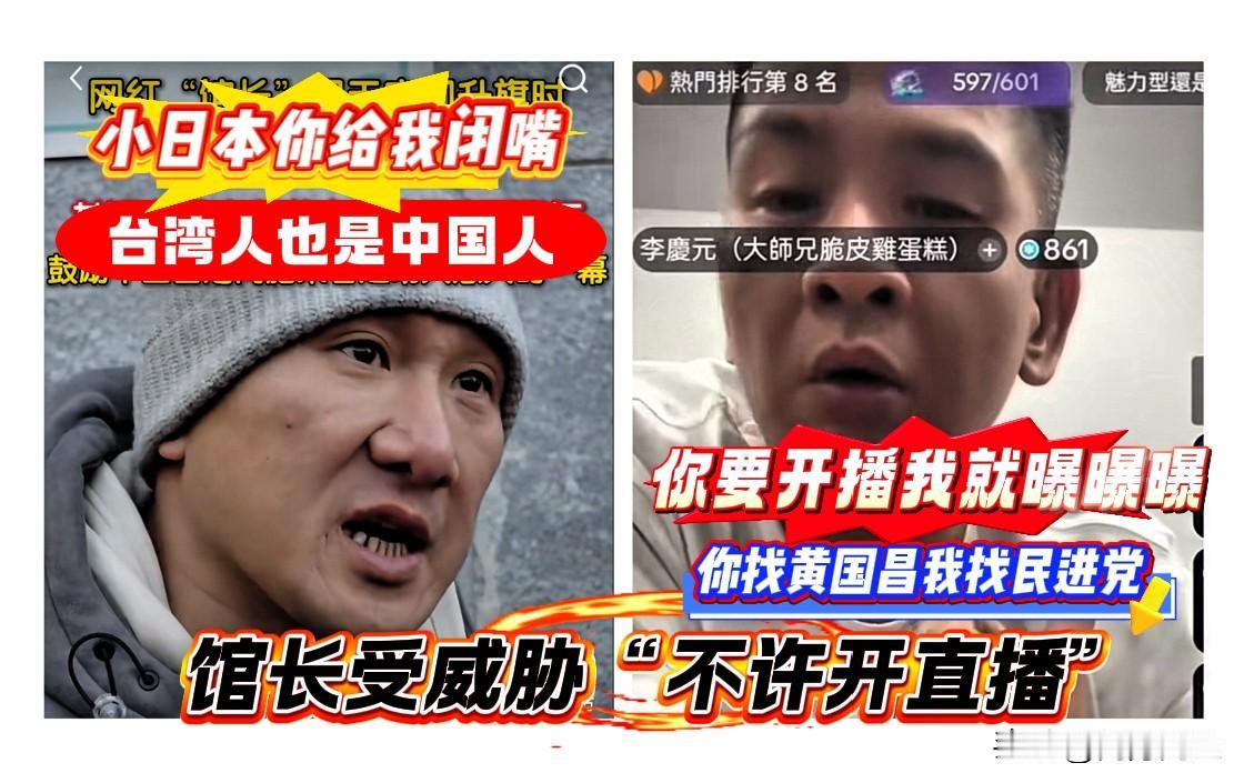 李庆元为何威胁馆长不让开直播,答案有了 李庆元威胁馆长,不让馆长开直播。馆长来到大陆后,走红网络,成为两岸的流量巨星。馆长每天开直播,能给他带来稳定的现金流。有人测算过,馆长一场直播结束,大约有一万元以上的收入(人民币)。 馆长的直播收入是馆长当下重要的经济来源,无本还可获利。 不让馆长开直播,意味着要断了馆长的财路。 馆长曾多次表明自己的健身房在台湾遭到抵制,一句话,装修豪华的健身房并没赚到钱。 馆长在台湾公开的赚钱门道除了开健身房,还涉及到服装和小食品店。 这几年,做生意的其实都不太好赚钱。 馆长的生意做的也是很寡淡。 馆长在直播间常常流露出急于找新赛道赚钱的想法。他曾经通过镜头,恳请大陆的企业家为他投资,他想开办电视台。 馆长的直播戳痛了有些人,有人得了红眼病 李庆元和另外两个人预谋策划了针对馆长的系列爆料,意在毁掉馆长的人设,在台湾社会孤立馆长。 李庆元赤裸裸的威胁道:你明天要开直播,我就继续曝曝曝,把你从云顶上的位置,拉到地下室”。 “你去找黄国昌,我去找民进党” 原来,李庆元的压轴答案在最后一句话里。