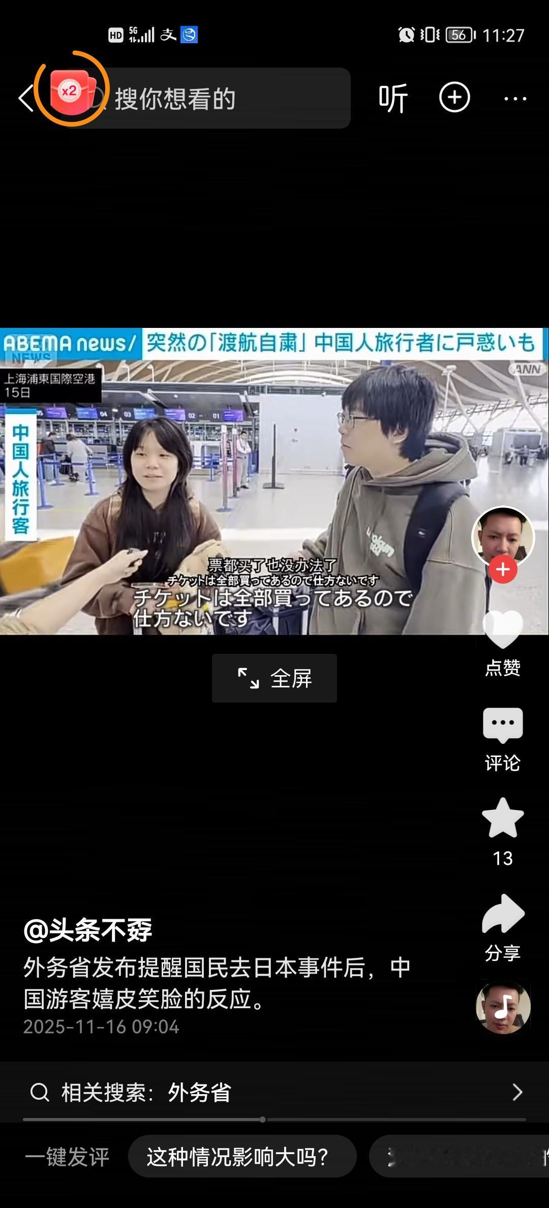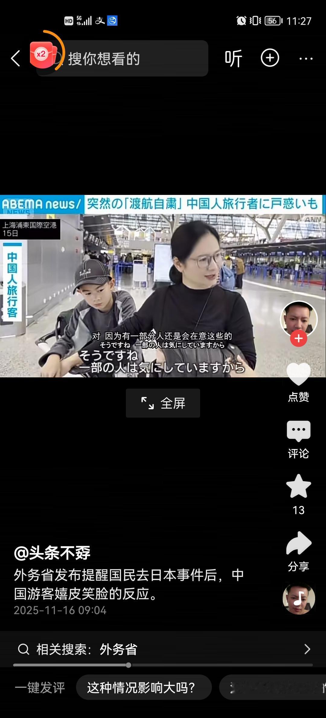 这些人现在都还要去日本,给日本送钱造子弹?外交部再三提醒中国公民近期避免前往日本,这些人还是不停要去日本,不是汉奸就是媚日,这个时候大家就应该同仇敌忾,对于日本这样有狼子野心的国家,它要是敢伸手,就毫不犹豫砍下它的爪子!