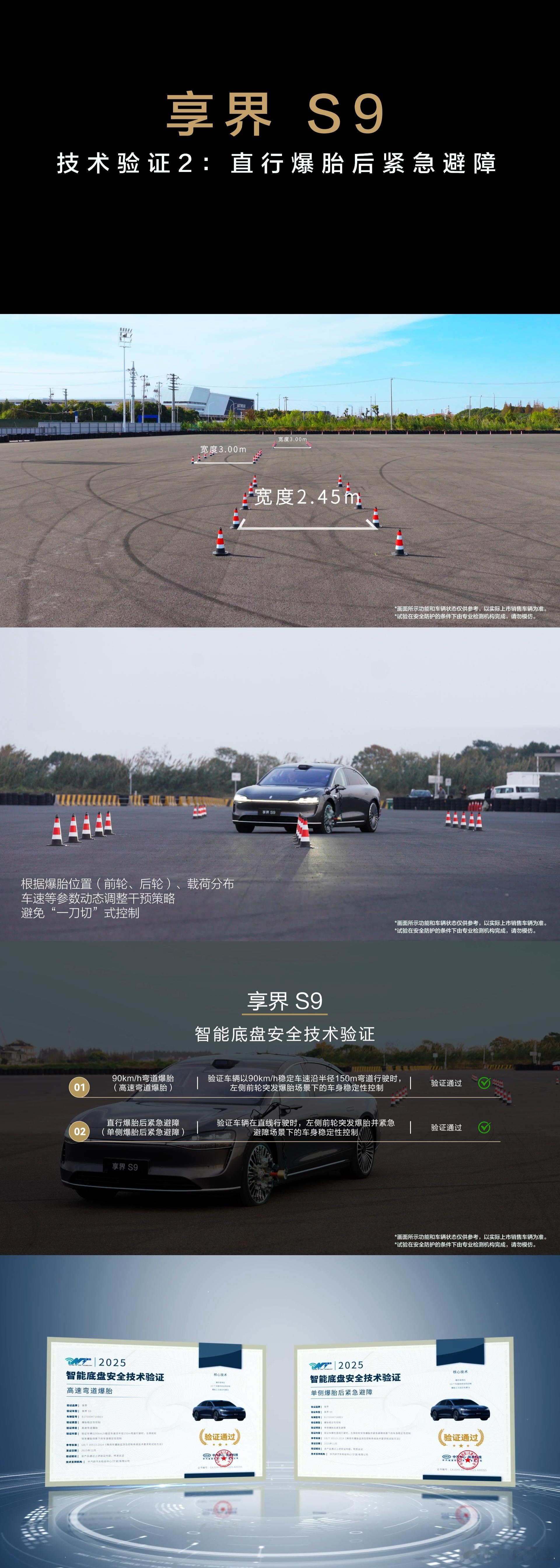 享界S9测试90km/h弯道爆胎、直行爆胎后紧急避障,轻松通过。爆胎后非但不失控,还能继续紧急避让,不愧是搭载华为途灵平台的实力~