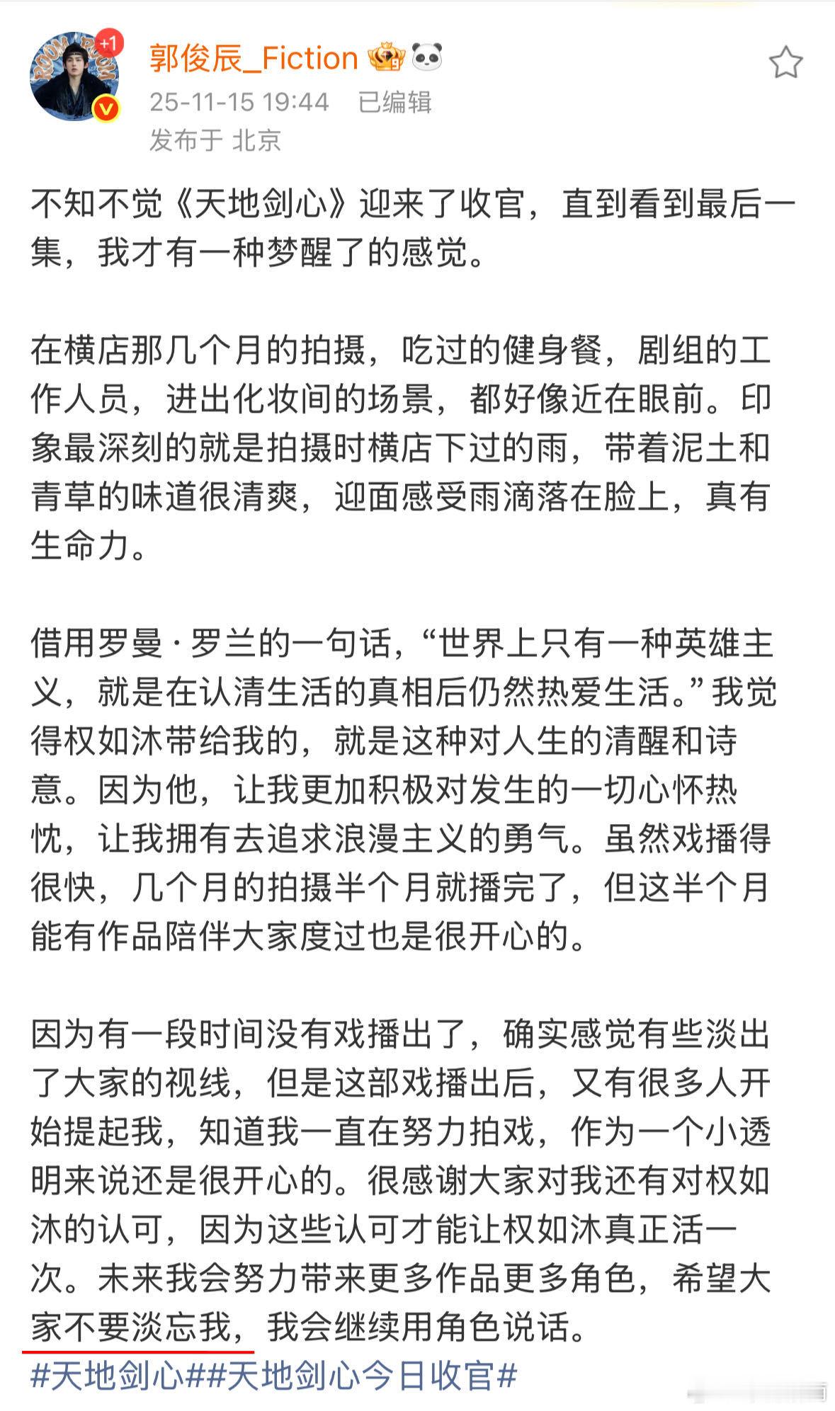 从权如沐身上看到了郭俊辰作为演员的成长,他说不要淡忘我时带着几分可爱倔强,其实好演员的每个用心角色都会在观众心里扎根,期待未来更多精彩演绎