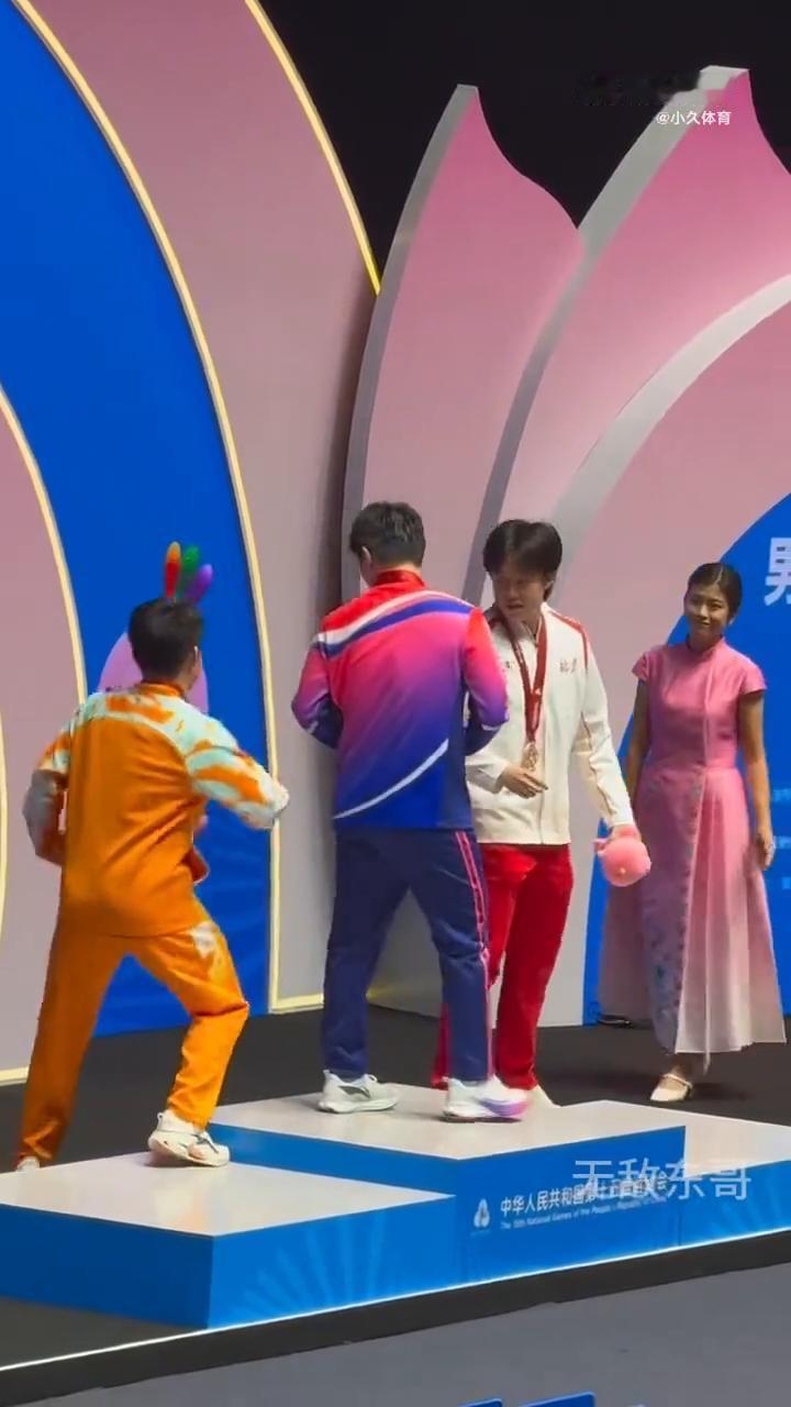 再次祝贺获奖运动员、教练员,再次出口获奖运动员、教练员。各位观众,中华人民共和国第十五届运动会乒乓球赛男子单打成年组颁奖仪式到此结束。 感谢您的关注与支持,各位观众,中华人民共和国第十二届运动会乒乓球。