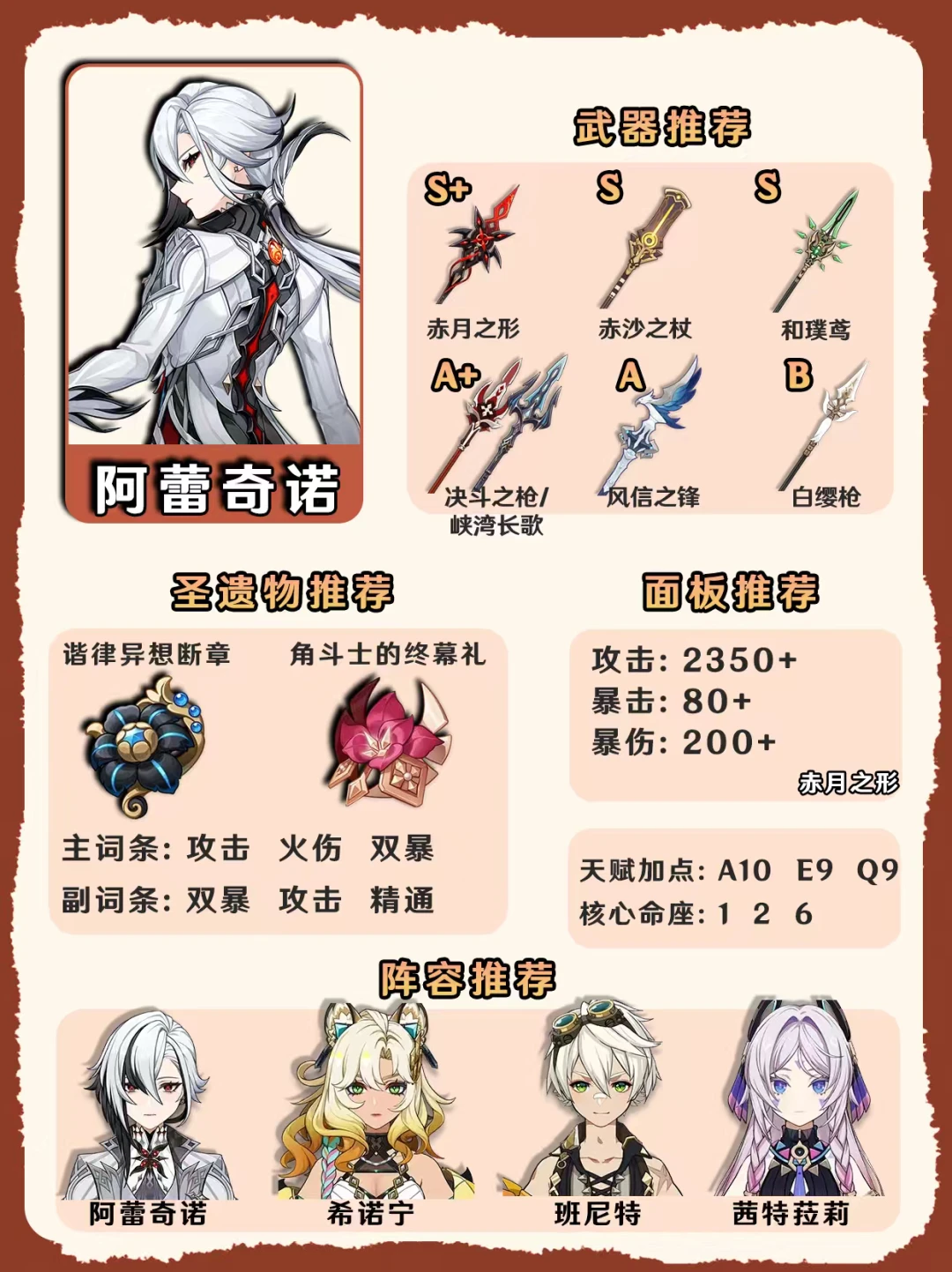 原神阿蕾奇诺复刻培养攻略一图毕业!
