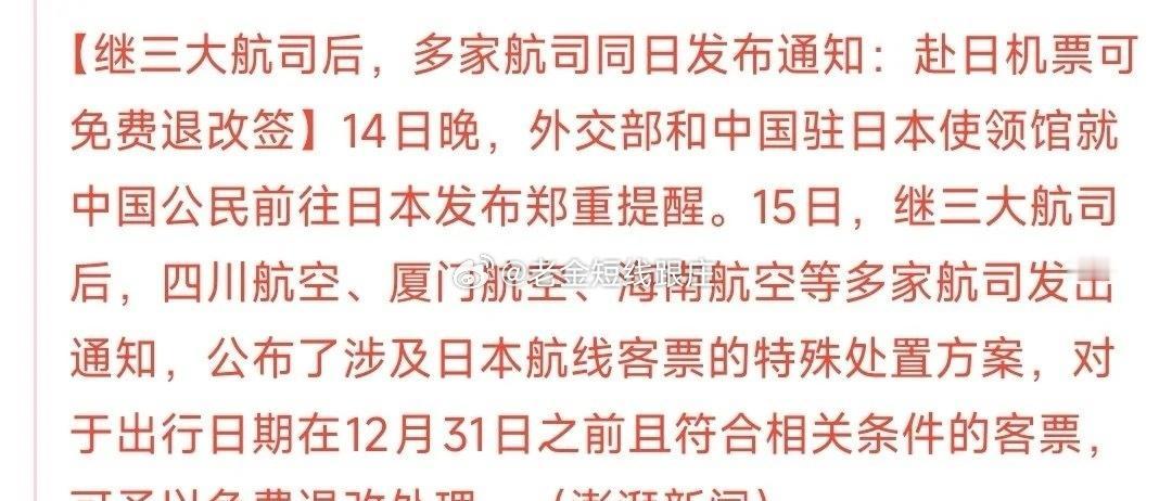 意图很明显,先掐了日本的一部分经济再说 由于日本那女的做出了挑衅行为,中国多家航司共同提醒乘客,去日本有危险,去旅游更是要谨慎。 数据显示,2025年上半年中国赴日游客消费达5160亿日元(约247亿人民币),在日本该季度外国游客总消费中占比20.4%。可以说,日本游客最多国家的来源就是中国。 现在打仗都是打的经济,只要经济一塌方仗不用打,就从内部就可以瓦解敌人,这就是现在战争的套路。