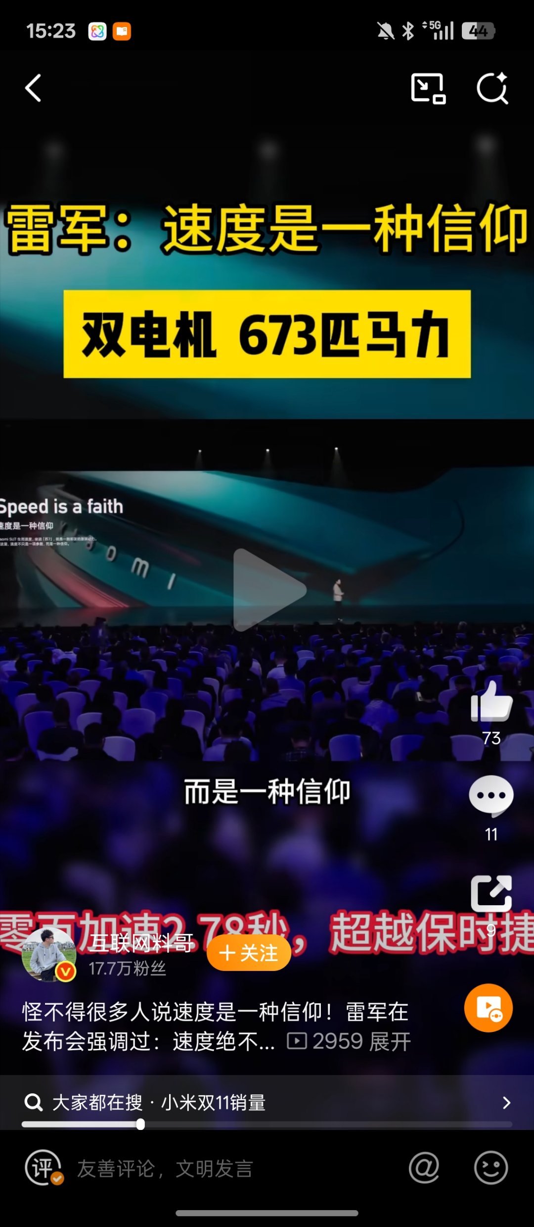 我是一直相信雷总的,所以速度是一种信仰我也相信至于信仰,第一,前提哪个优先级更高
