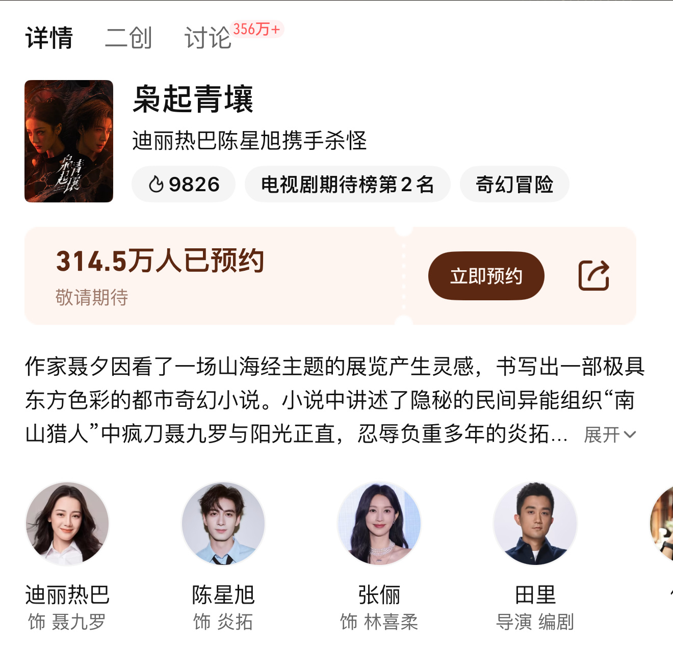 枭起青壤据说明天定档🙋站内现在预约量是314.5w人