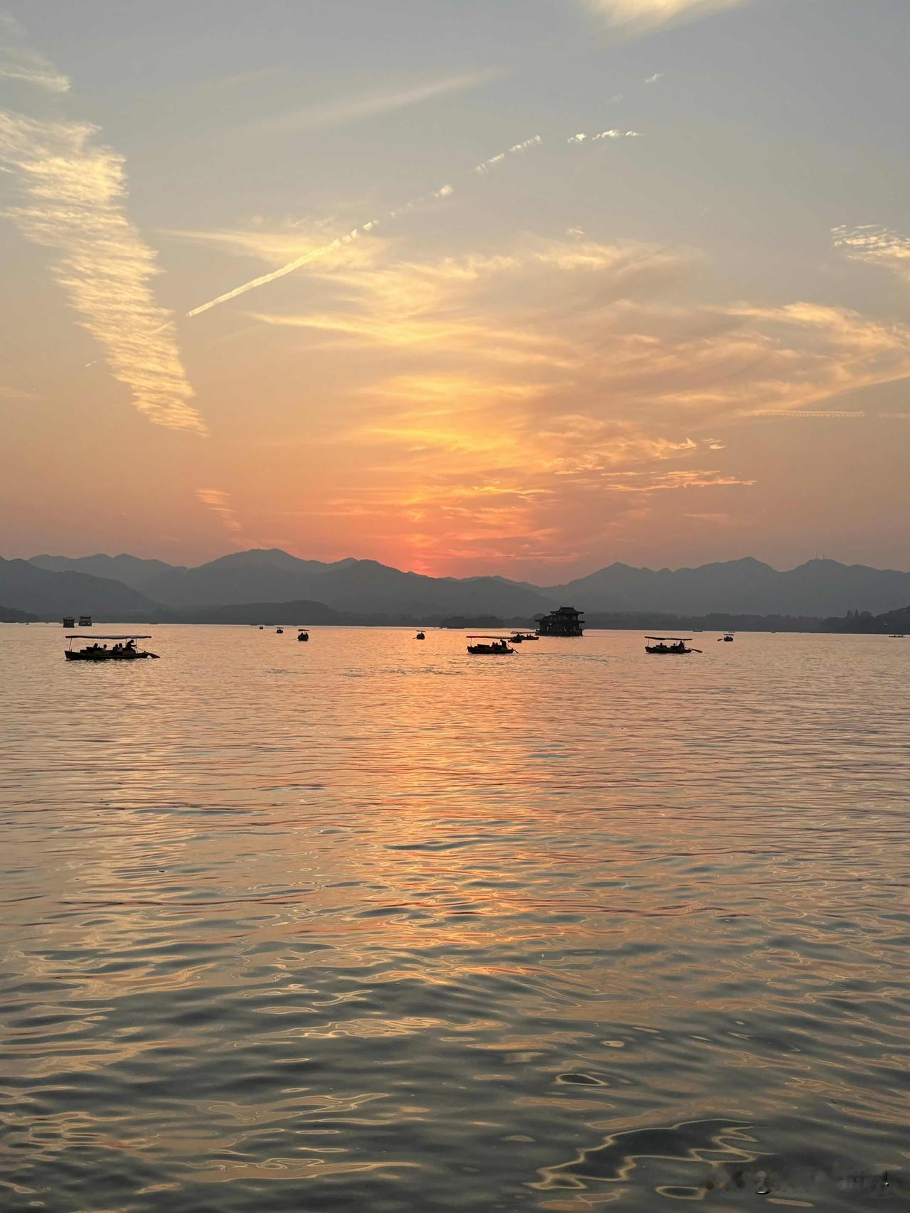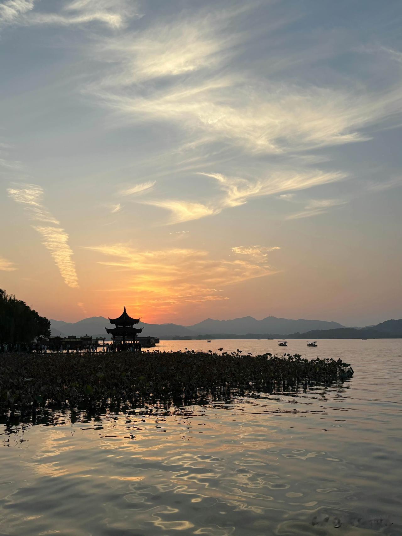 西湖的落日真的会治愈所有疲惫~ 傍晚沿着苏堤慢慢走,夕阳把湖面染成金红色,波光粼粼的像撒了碎钻,晚风带着桂花香,太惬意了! 游船在落日余晖里缓缓划过,岸边的柳树都镀上暖光,随手一拍都是氛围感大片,根本不用滤镜~ 看着太阳慢慢沉入远山,整个人都被温柔包裹,这才是杭州秋天该有的样子! 来杭州一定要冲一次西湖落日 真的会记很久~