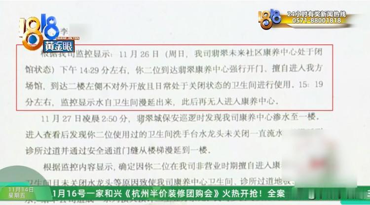 浙江杭州,女子跟婆婆逛街时借用门没关的康养中心厕所使用,然后就被康养中心张贴告业主函,说女子和婆婆强行进入并使用没有开放的卫生间,在她们走后卫生间渗水,造成三五万元损失,要求女子和婆婆赔偿。女子坚持表示没有损坏过卫生间任何设施,坚持要打官司。多亏女子的坚持,康养中心提交到法庭上的监控视频有多处漏洞,女子丈夫更是提出关键性问题所在,康养中心的回复引发热议。 2023年11月份,李女士和婆婆周末逛街的途中遇到内急,但是附近没有公共厕所,婆婆走了一圈发现一家康养中心,是她经常去的那家,于是就打算借用一下厕所。 好巧不巧的是康养中心大门虚掩着,推门进去也没人回应,李女士内急忍受不了,婆婆就把李女士带到2楼的卫生间,使用完两个人就离开了。 李女士根本就没把这件事当回事,直到她接到康养中心打来的电话,质问她们是不是在周末进入过康养中心,林女士不假思索的给出肯定回答。 几天后,李女士和婆婆的大名就被康养中心以告业主函的形式张贴在李女士家大门上,康养中心的门口也有张贴。 康养中心表示李女士和婆婆进入康养中心是强行进入的,而且进入后还使用了没有开放的卫生间,在李女士和婆婆走后,卫生间就开始渗水。 监控视频显示,在李女士和婆婆走后,再有任何人进入到2楼的卫生间。 保安在次日凌晨发现卫生间渗水到一楼,赶紧寻找渗水来源,发现是2楼的卫生间水龙头没关,并拍摄下视频。 因卫生间水龙头没关导致的损失,高达三五万元。康养中心认为损失应该由李女士和婆婆承担赔偿责任,若是协商不成,康养中心就会启动法律程序维权。 李女士一脸不可思议,她怎么都没有想到,一次内急借用厕所居然会引发这么大的后果,但是李女士坚持表示,卫生间渗水并非她和婆婆所为。 李女士的婆婆经常会到康养中心去,所以对康养中心的内部环境比较熟悉,当天是婆婆带着李女士直接来到2楼拐角处的卫生间,且当时的卫生间是开放的状态。 至于康养中心表示的强行进入的问题,李女士表示根本不可能。 因康养中心是电子锁,在上锁的情况下,没有密码是无法进入的,而且也拽不开大门。 况且康养中心也并未张贴任何不能在周末进入的字样,也不存在强行闯入的问题。 李女士当天看门虚掩着才拉开了大门进入,进入后大厅里没有灯光,要不是婆婆带着,李女士根本找不到卫生间的位置,又何谈故意去损坏卫生间设施呢? 康养中心有监控视频为证,李女士和婆婆只有空口白牙的解释,只能求助法庭给出公正的判决。 岂料开庭后就遇到了困难,因康养中心迟迟不提供发生渗水前后的水表数值,这是关于渗水到底是何时发生的最直接的证据,但是康养中心不知为何一直不能提供。 在法庭上李女士的丈夫终于看到康养中心提供的监控视频,以及发现渗水时保安拍摄下来的视频,发现其中的异常。 还没等李女士丈夫提出异议,康养中心表示要先定损后再重新起诉,对于水表数值一事只字不提。 根据《民事诉讼法》第67条的规定:当事人对自己提出的主张,有责任提供证据。 当事人及其诉讼代理人因客观原因不能自行收集的证据,或者人民法院认为审理案件需要的证据,人民法院应当调查收集。 既然康养中心认为是李女士和婆婆在使用完卫生间后才发生的渗水,不应仅凭着李女士和婆婆曾使用过卫生间后,就再无人进入卫生间就断定是李女士和婆婆所为。 李女士的丈夫仔仔细细看了康养中心提供的监控视频,发现康养中心所说的渗水的卫生间并非是李女士和婆婆去过的那间。 康养中心二楼有很多卫生间,在李女士和婆婆走后的确有水流出,但不是李女士和婆婆去过的那间。 再仔细听监控视频里的声音,李女士和婆婆在使用完卫生间后曾用过水龙头,是有很清晰的水流声的,但是也有很清晰的水流停止的声音。 康养中心的保安在凌晨2点发现水龙头没关并拍摄下来的视频,李女士的丈夫也发现问题。 视频里的水龙头流出的水并未灌满水池,因水池的边缘部位还是干的。既然水龙头里的水都没有灌满水池,又何来的因水龙头没关导致的渗水说法呢? 李女士丈夫将所看到的情况一一都告知给康养中心,康养中心一句联系他们的律师就打发掉了李女士丈夫的反馈。 根据《民法典》第1165条的规定:行为人因过错侵害他人民事权益造成损害的,应当承担侵权责任。 依照法律规定推定行为人有过错,其不能证明自己没有过错的,应当承担侵权责任。 康养中心渗水一事到底是否与李女士和婆婆使用卫生间有关,需要康养中心提供更多的有力证据去佐证自己的主张。 若无有力证据可以主张李女士和婆婆有侵权行为,那么康养中心就没有向李女士和婆婆主张索赔的根据。
