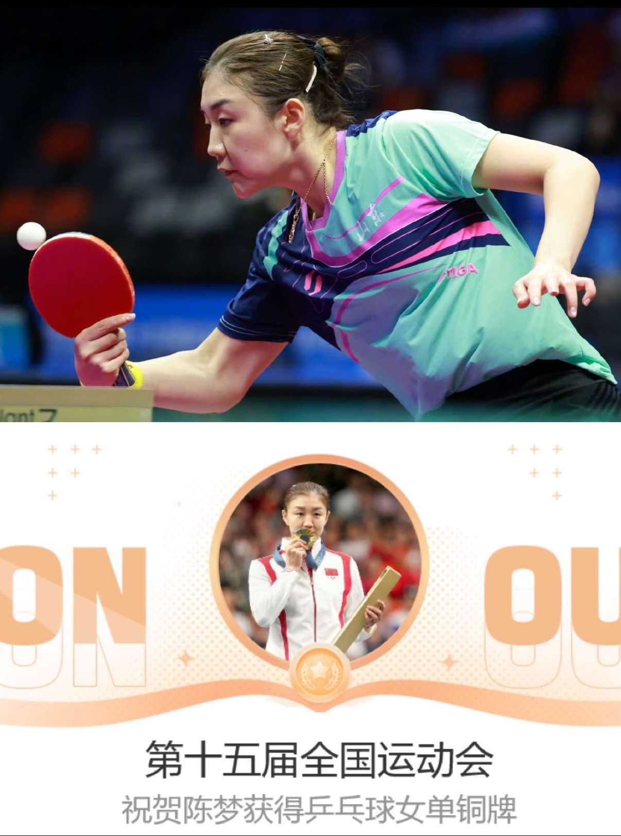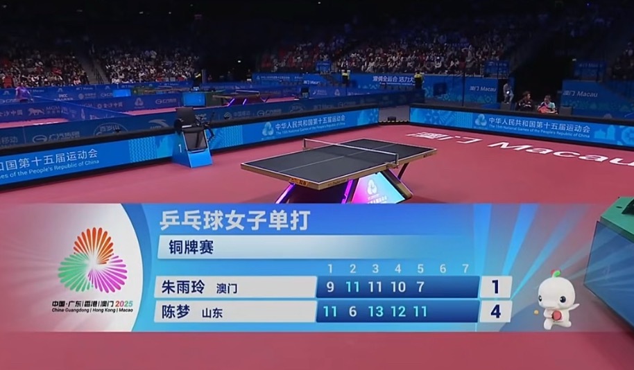 全运会乒乓球女单铜牌争夺战,陈梦4:1战胜朱雨玲拿下女单铜牌🥉