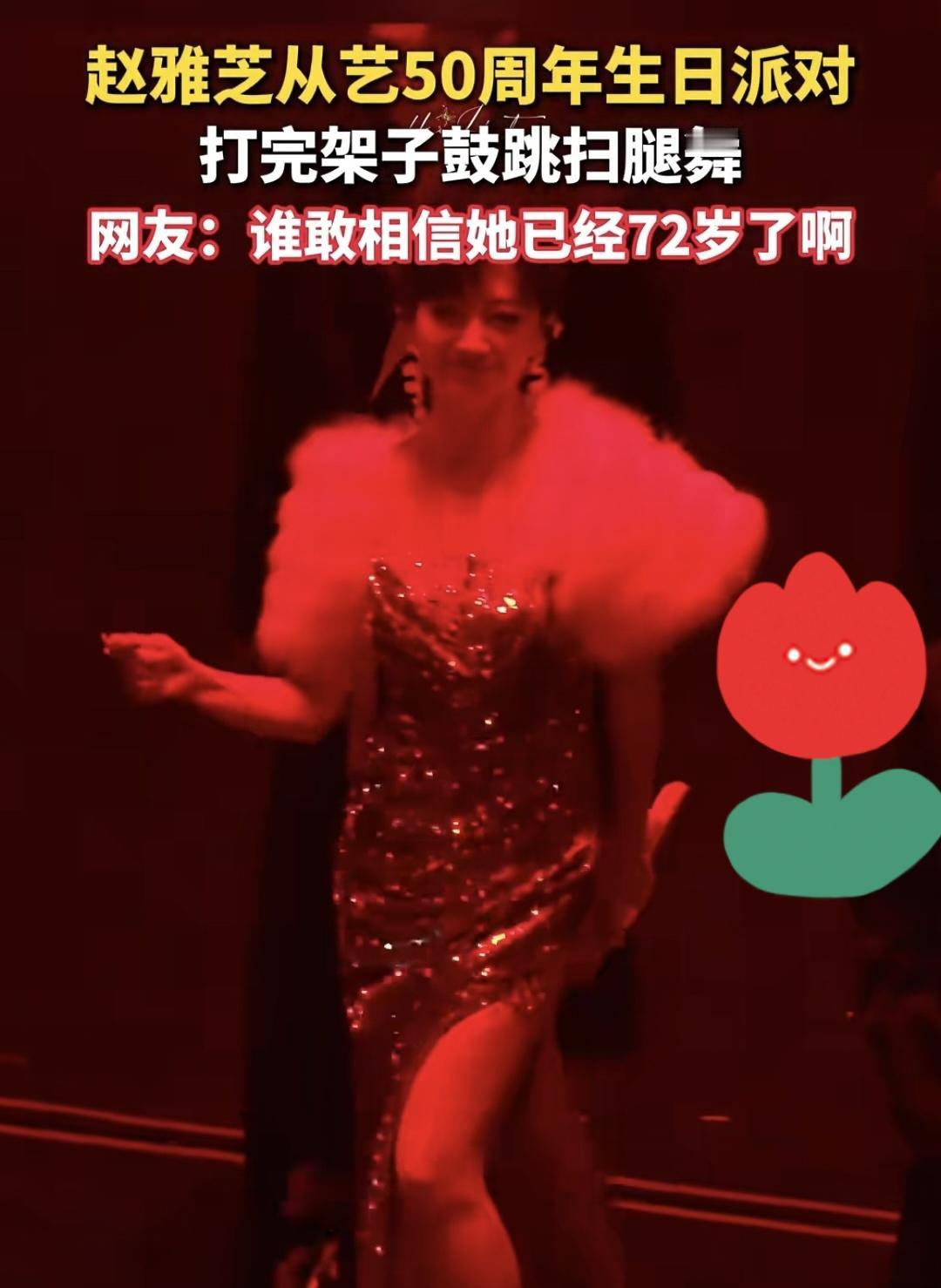 72岁的赵雅芝从艺50周年生日派对[烟花] 白娘子果真是仙女! 又是架子鼓,又是扫腿舞 谁敢相信她状态是72岁! 让我们汗颜呐[捂脸] 这状态可不得了 得长久自律才能实现! 坚持瑜伽,坚持锻炼,坚持防晒 三餐规律搭配健康 可讲究了,花费也是巨大的! 普通人很难企及呐![吐舌] 祝福她![送自己一朵花]