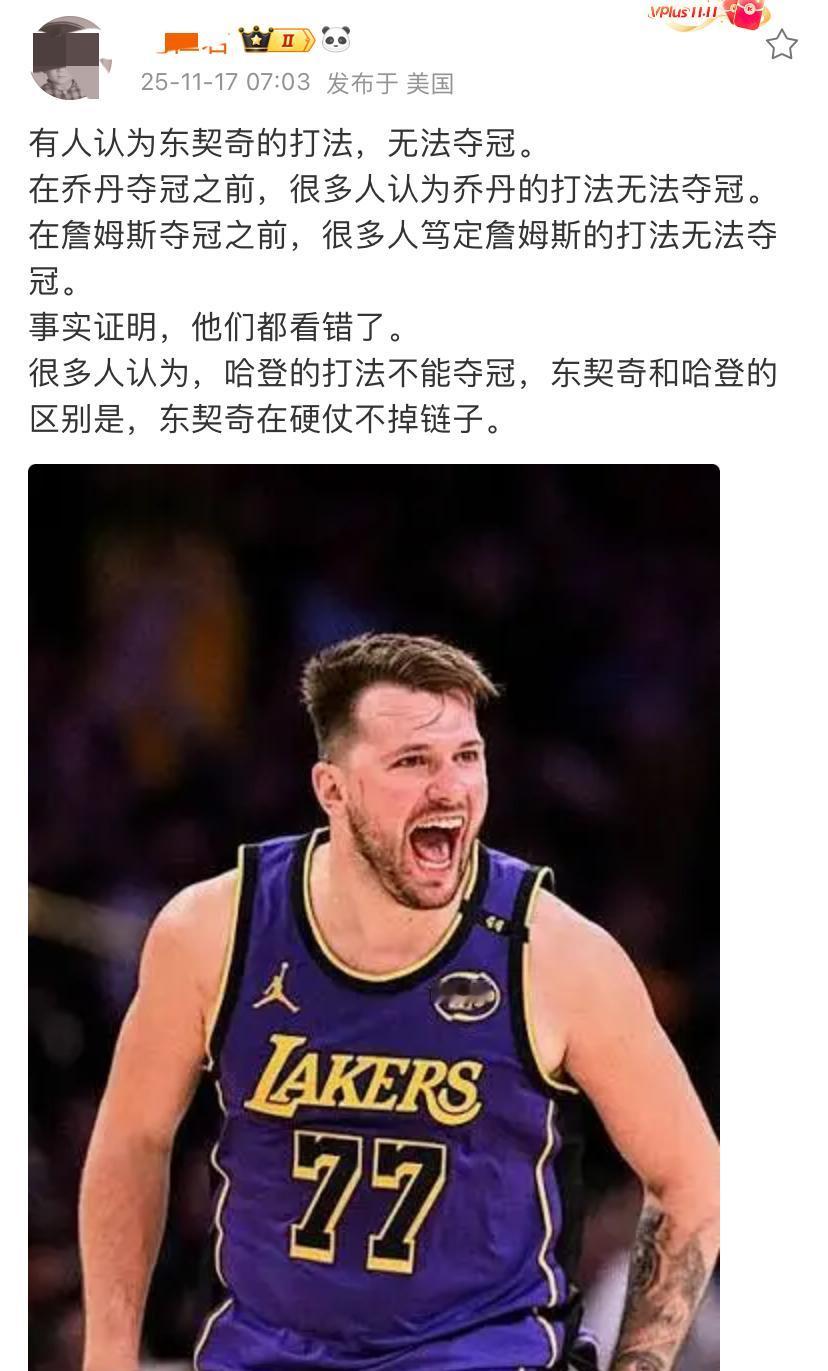 今天看到了这样一个帖子: 说有人说东契奇的打法无法夺冠! 这位在漂亮国的中国网友回答的很客观,但是有点极端! 乔丹夺冠是有了:禅师,罗德曼,科尔,加上自己强硬的打法才能夺冠! 詹姆斯强硬的打法,再1.0时期的骑士,带着那样的阵容进入总决赛,说明打法没有问题、是身边帮手太少,自从有韦德,博士,欧文,勒夫,浓眉,加上强硬打法也夺冠了🏆! 东契奇跟哈登都是同样的问题! 东契奇
