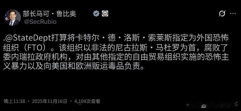 🇺🇸🇻🇪美国国务院国务卿卢比奥计划将名为“太阳卡特尔”的贩毒组织指定为外国恐怖组织,称该与马杜罗结盟的网络腐蚀了委内瑞拉政府机构,参与恐怖主义相关活动,并将毒品走私到美国和欧洲。 拉美反美联盟 拉美反美浪潮 拉美反霸权