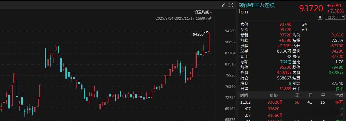 碳酸锂期货临近涨停,回到9-10万/吨,目前的走势符合预期,对10万以上,此前认为短期是有难度,且看,怕不能直接一波流,把明年的预期打满吧