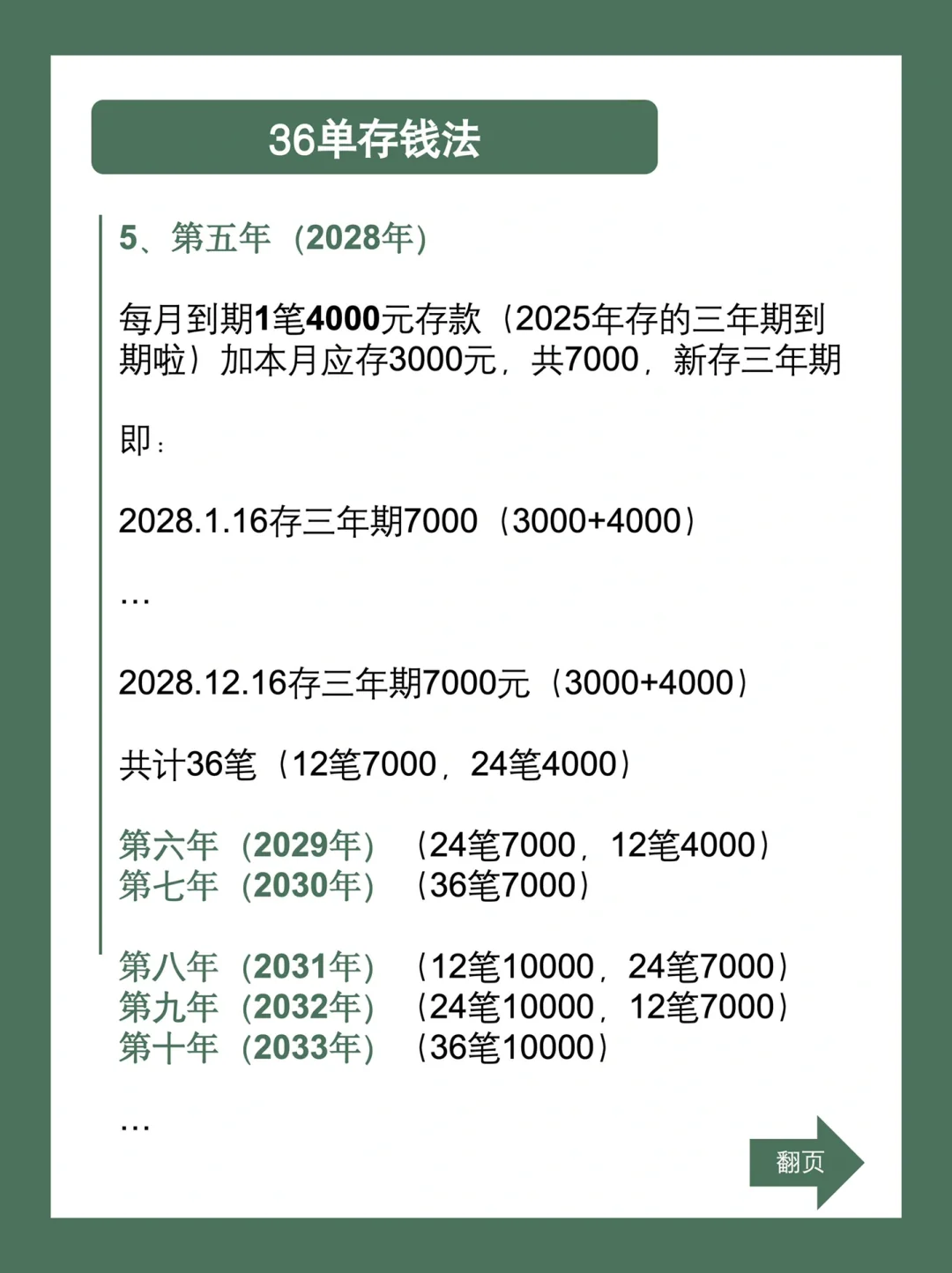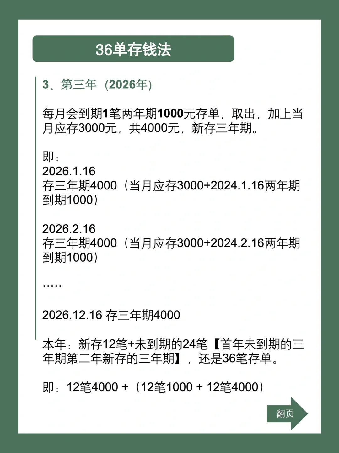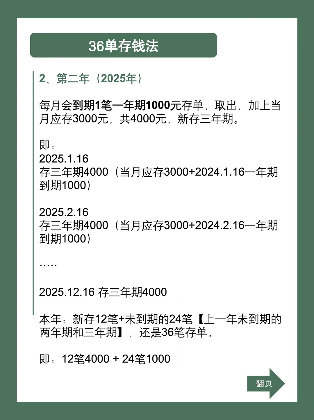 36单存钱法的好处,每个月都有一笔钱到期,有一笔利息收入,方便灵活用钱,蕞重要的是每张存单都享受到三年期好利,这样存钱存款会越来越多,利 还滚利。