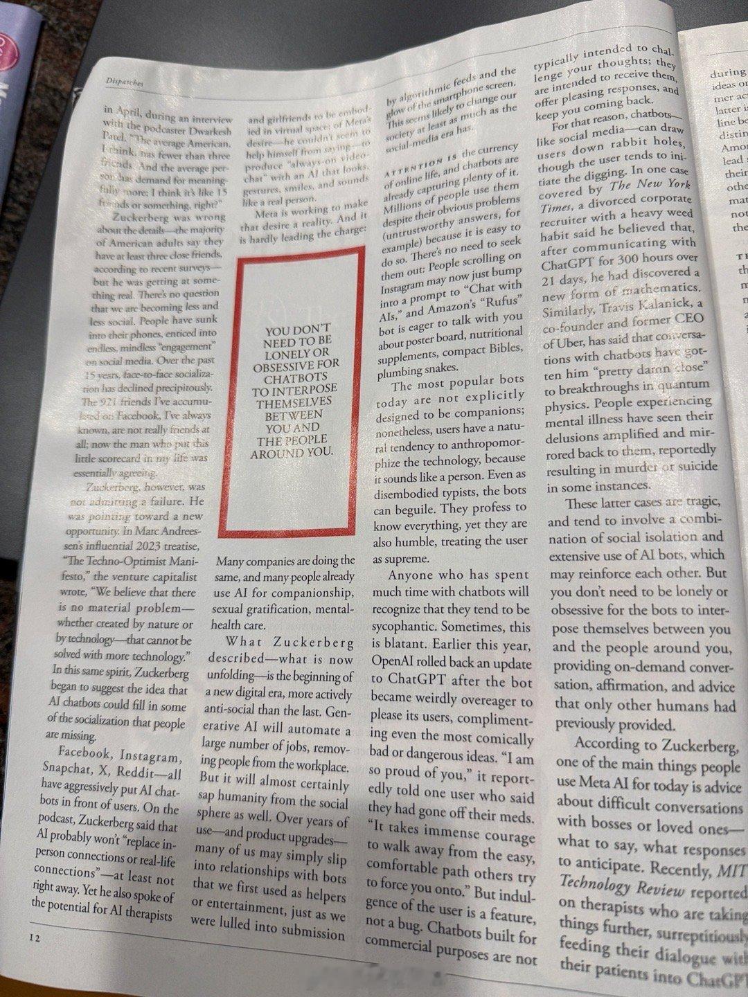 真的已经不太习惯这种杂志排版了。字体很小又密密麻麻,还分了四栏。还不如去看电子版。
