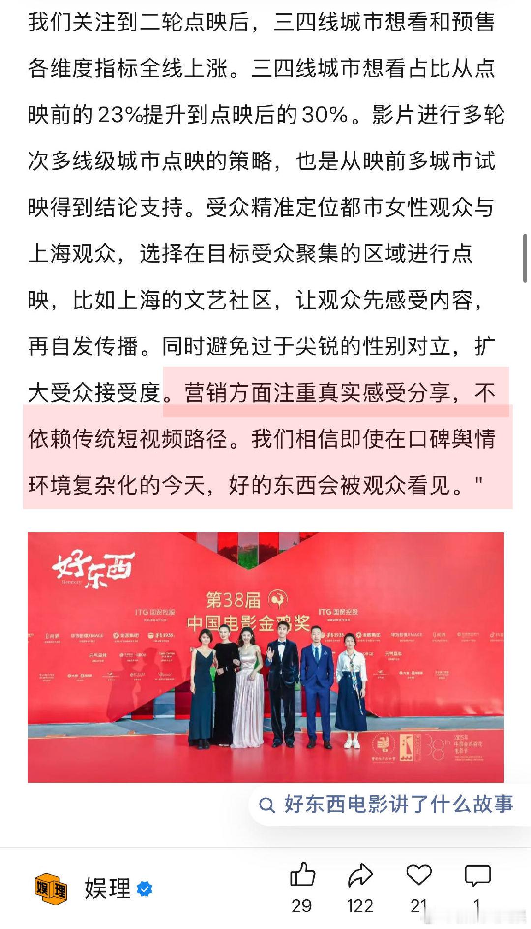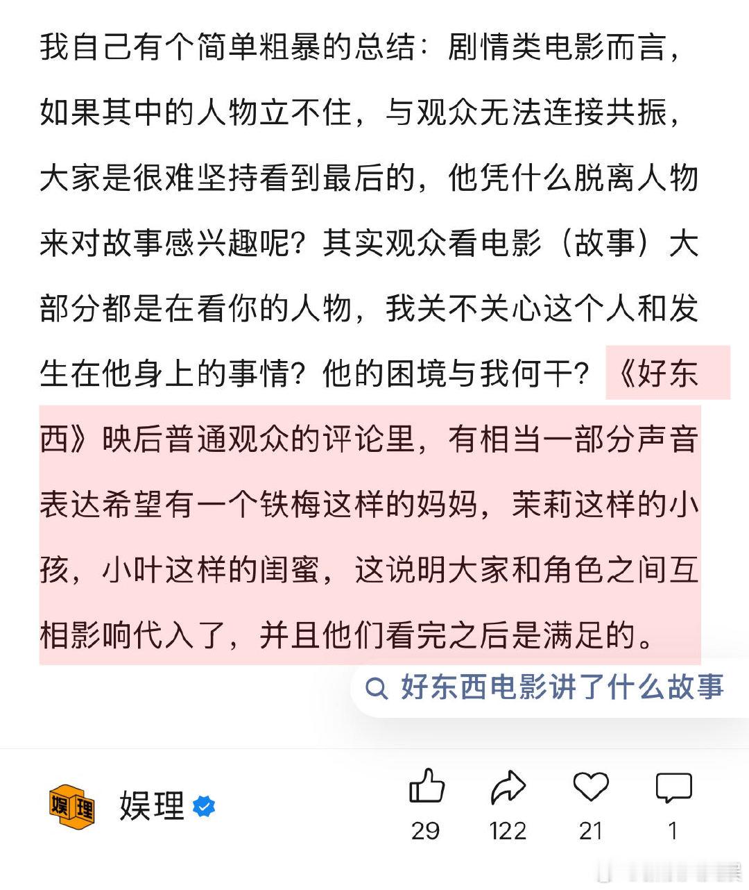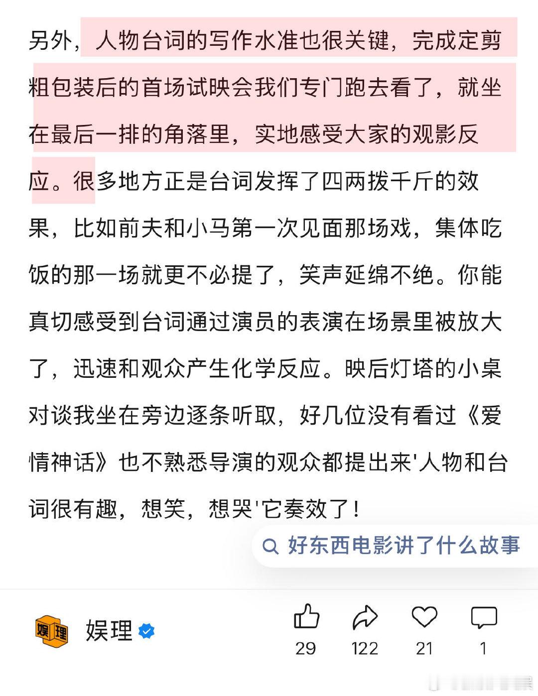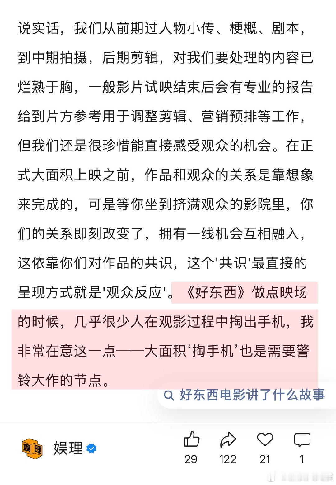 《好东西》《爱情神话》制片人叶婷谈及邵艺辉时,直言对方的原创能力非常强,“她是一个作者向的创作者,很难单一用职业编剧、职业导演等身份去定义,有别于'定制生产'型的工作模式。她擅长观察与捕捉,有能力将自身对于当下社会的思考观察与生命体验相结合,并且转化落定为文字,最终完成影像化表达。这本身就具有稀缺性。”↓