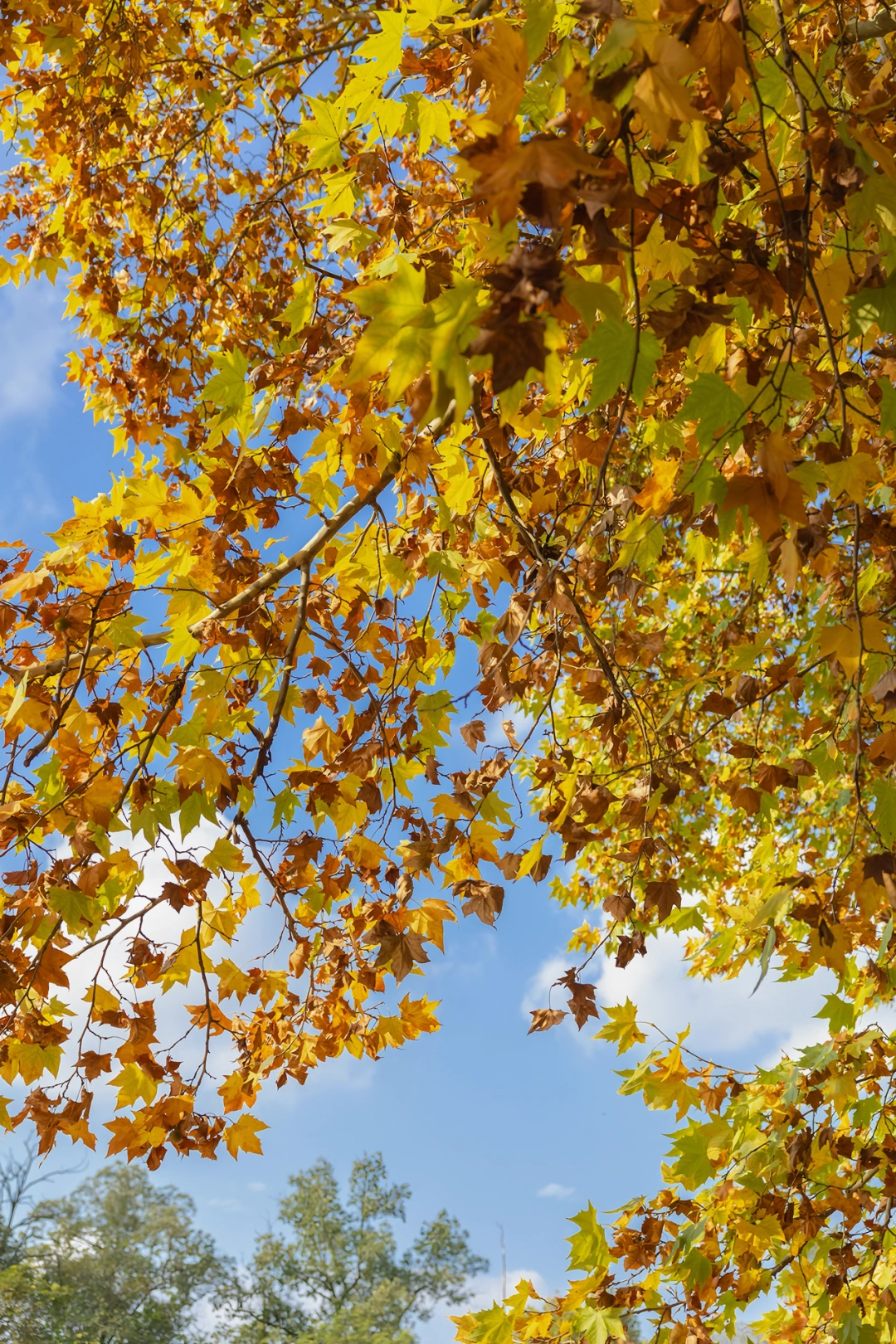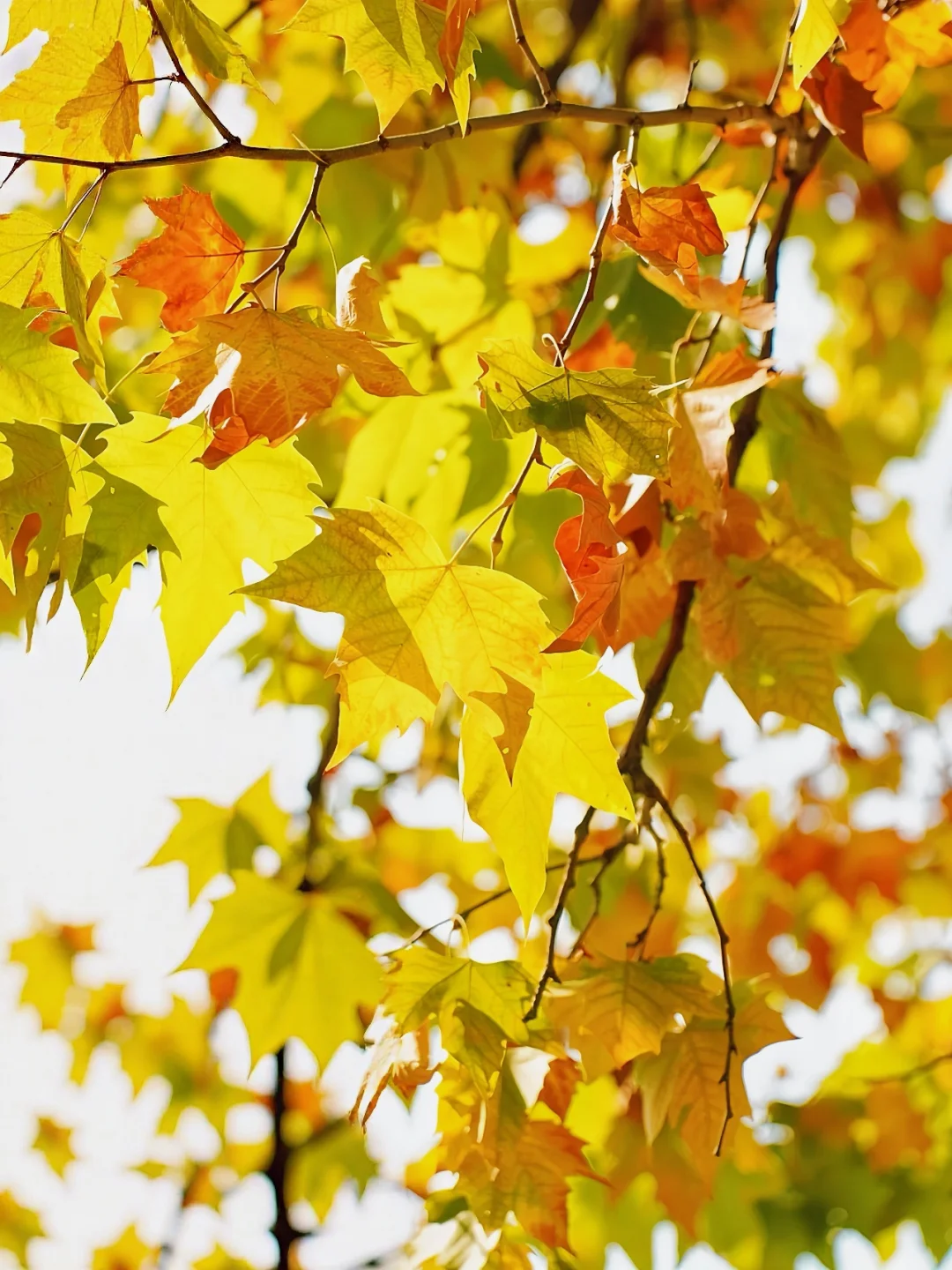 ✔️晴天比阴天好看许多,树叶在阳光下显得更金黄
