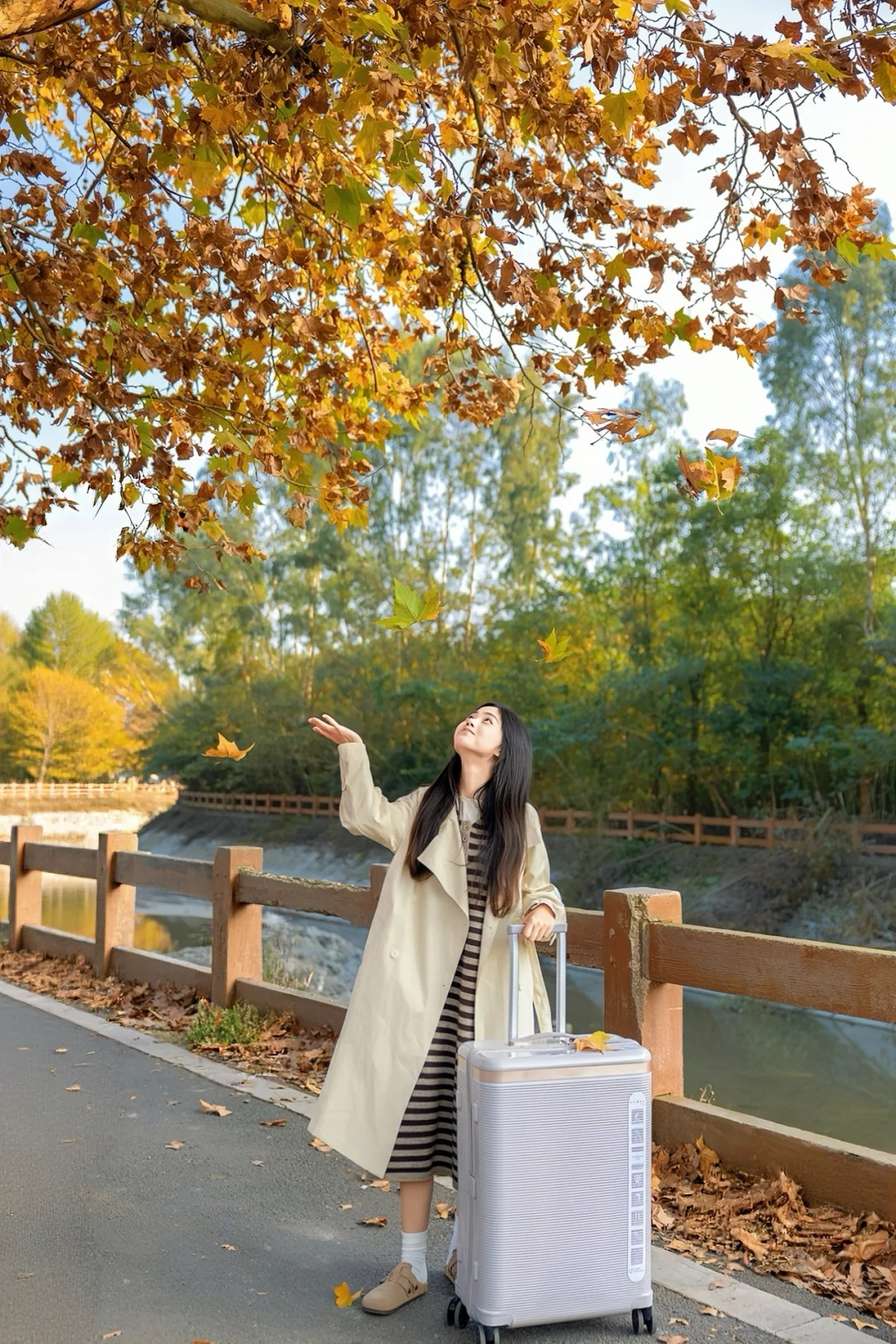 这次出门真的要夸一下我的行李箱!当出片道具真的将氛围感拉满,重要的是还蛮抗造,双层的防爆拉链也让旅行更安全!走累了可以还当推车用,360度的滚轮滑行真的很丝滑哦,真的超喜欢~