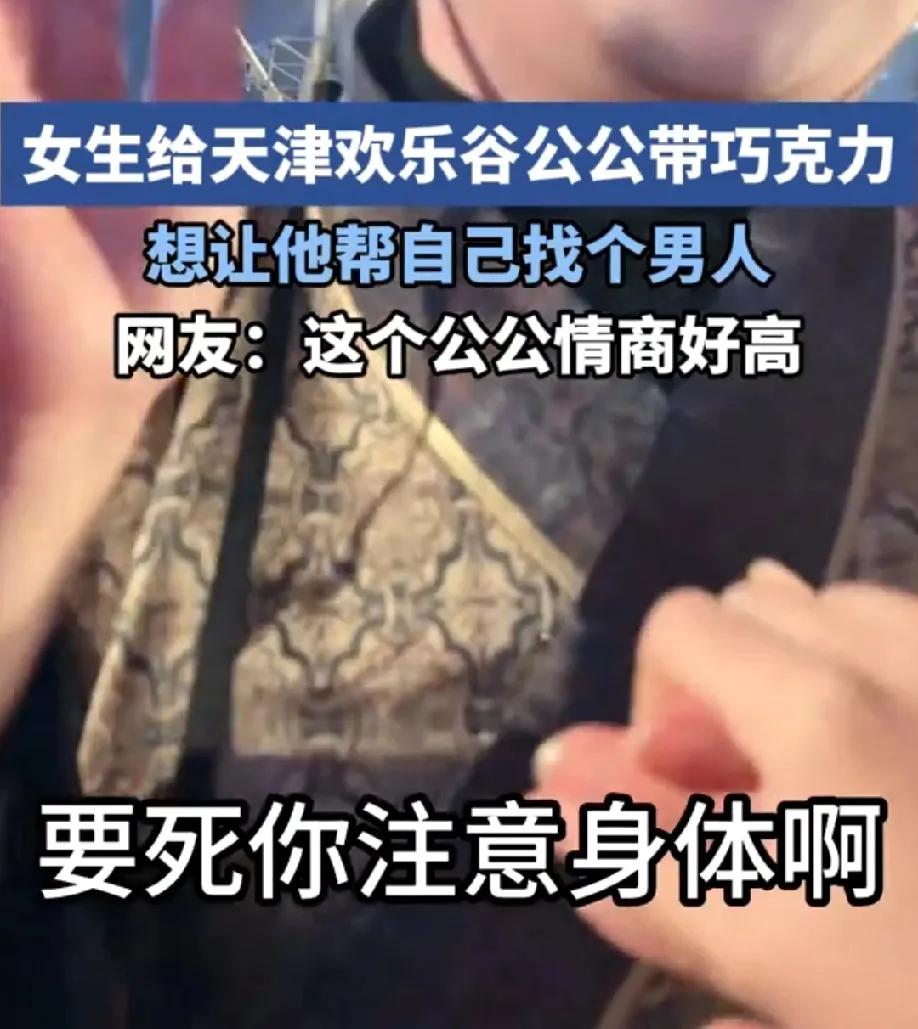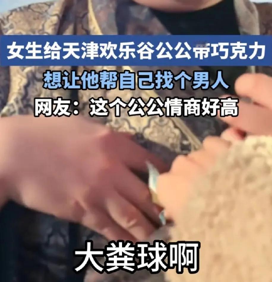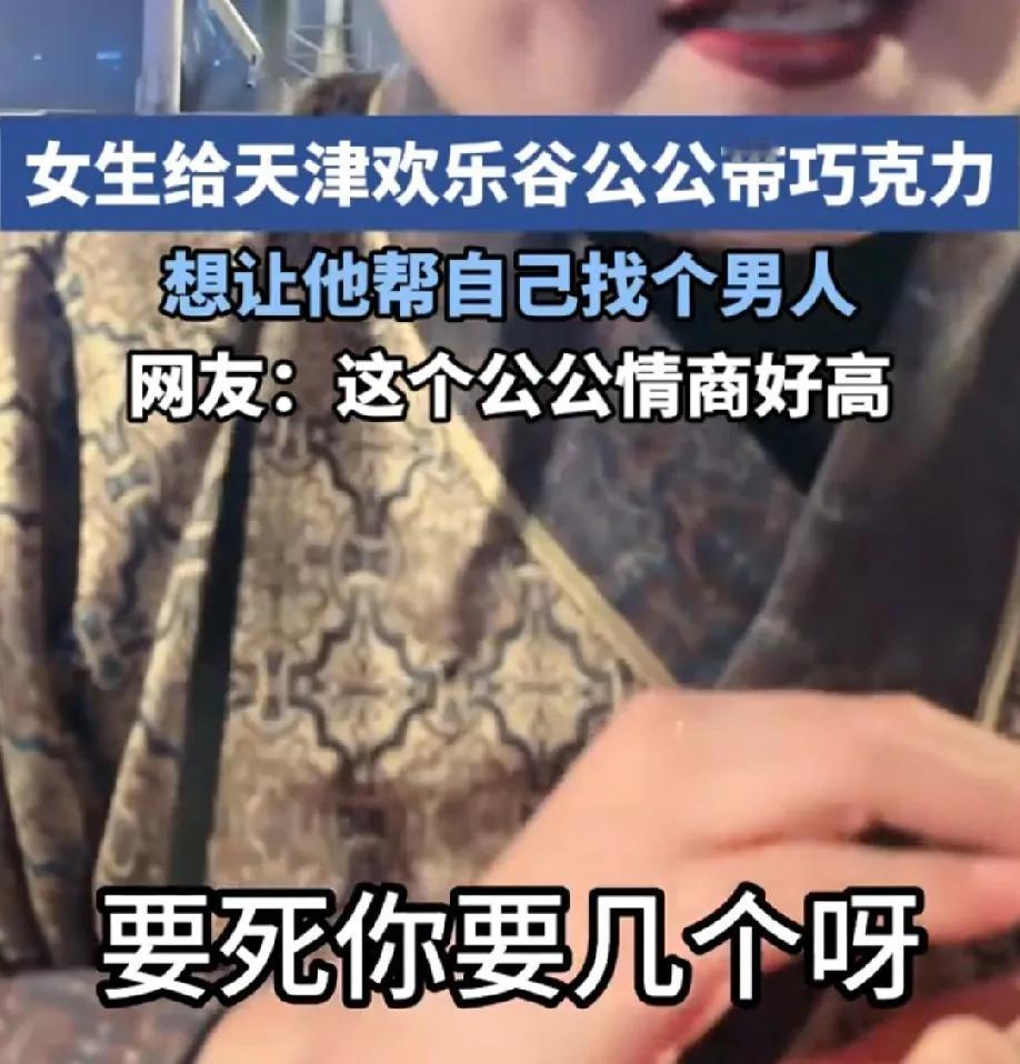 “公公,巧克力”“大粪球啊”“帮我找个男人”“你要哪个啊”“帮我找个帅一点的”“要死你要要几个呀”“要365个”“要死你注意身体啊!” 天津欢乐谷公公火是火的道理,情商好高。怪不得皇帝都会被奸臣蛊惑呢,这情绪价值拉满,谁能抵抗得住! 公公嘴上说着大粪球,手却很实诚的拉开衣领,巧克力就乖乖进衣领了。刚开始女子说要找男人,公公还认真听,结果一听365个立刻破防了!知道女子在逗他,但还贴心拍着女子的手安慰道,注意身体啊! 不过这姐妹需求有点高,例假期都不放过。真是个馋丫头啊!就像网友说的“一年有365个男友,我送你365个祝福!” 这npc比起那种擦边的,不要好太多了,“姐妹”感十足,情绪价值拉满!