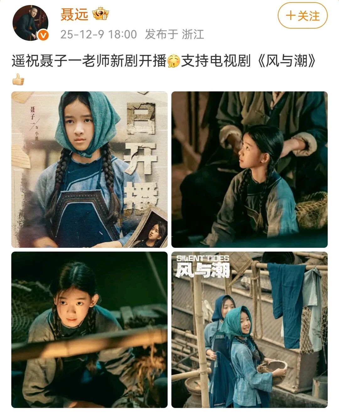 当11岁的孩子还在为周末能否多玩一小时手机与父母讨价还价时,聂远的女儿聂子一已经完成了四部正剧的拍摄。最新作品《风与潮》