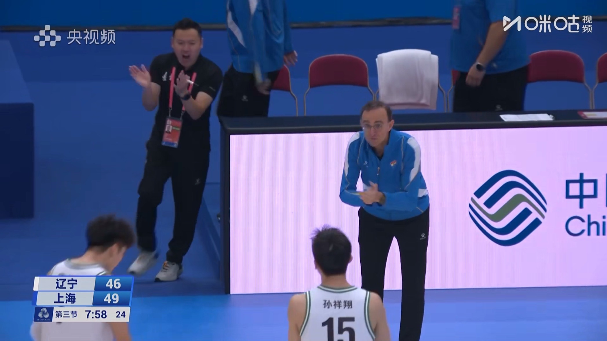 好样的下半场一开始辽宁队连续追分将分差迫近到一分了上海队叫停