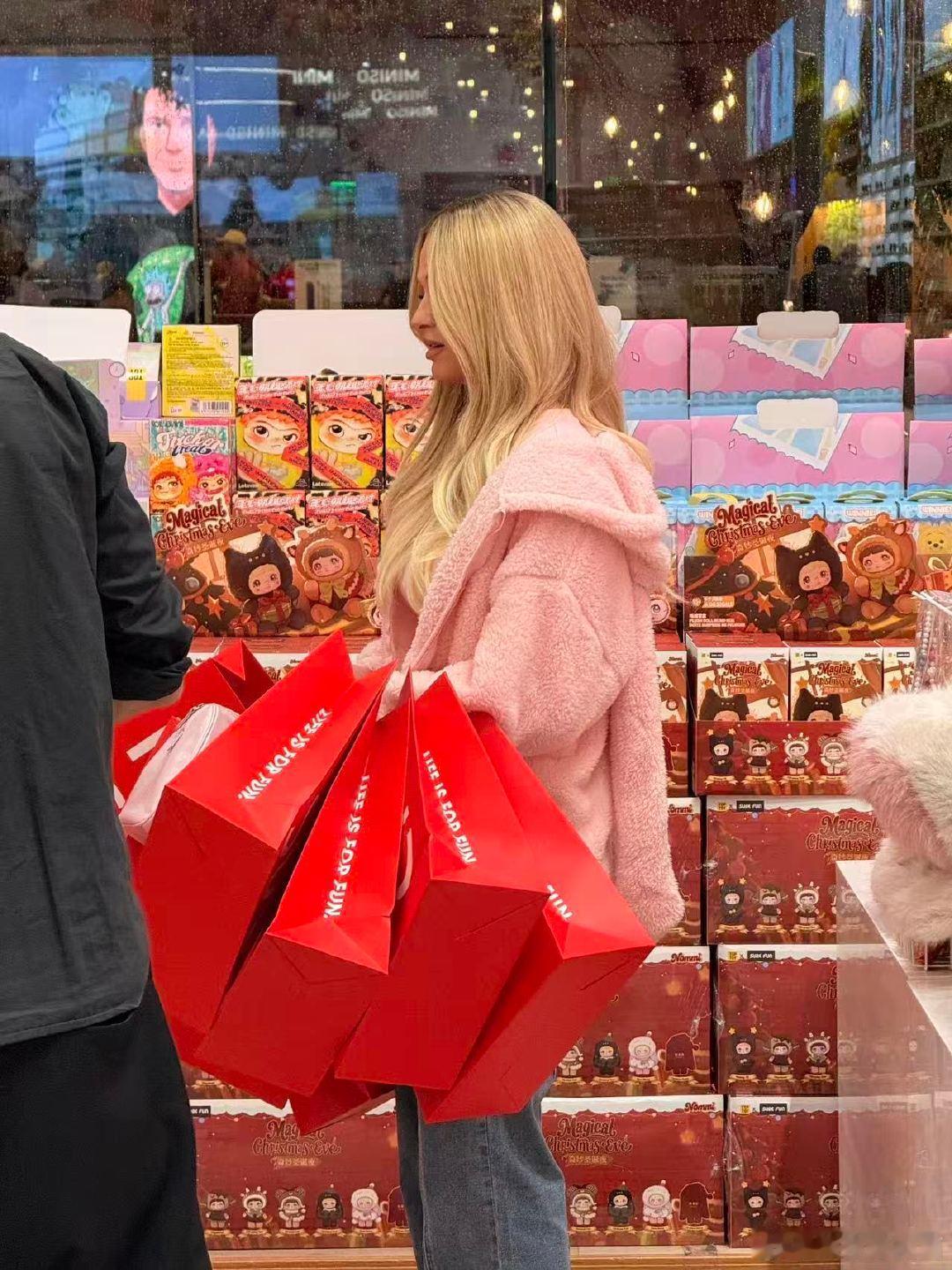 网友在洛杉矶偶遇ParisHilton带着孩子扫货,这画面太暖啦!进货模式火力全开,小票一张接一张,有钱又有爱,太幸福了!