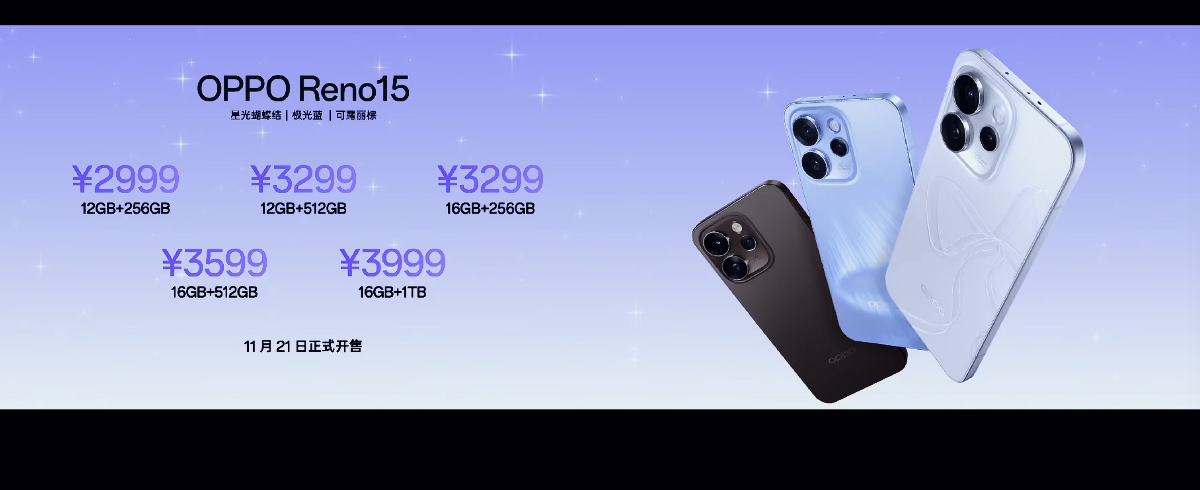 标准版和Pro起售价分别是:2999,3699还有一款Reno 15C将在一个月