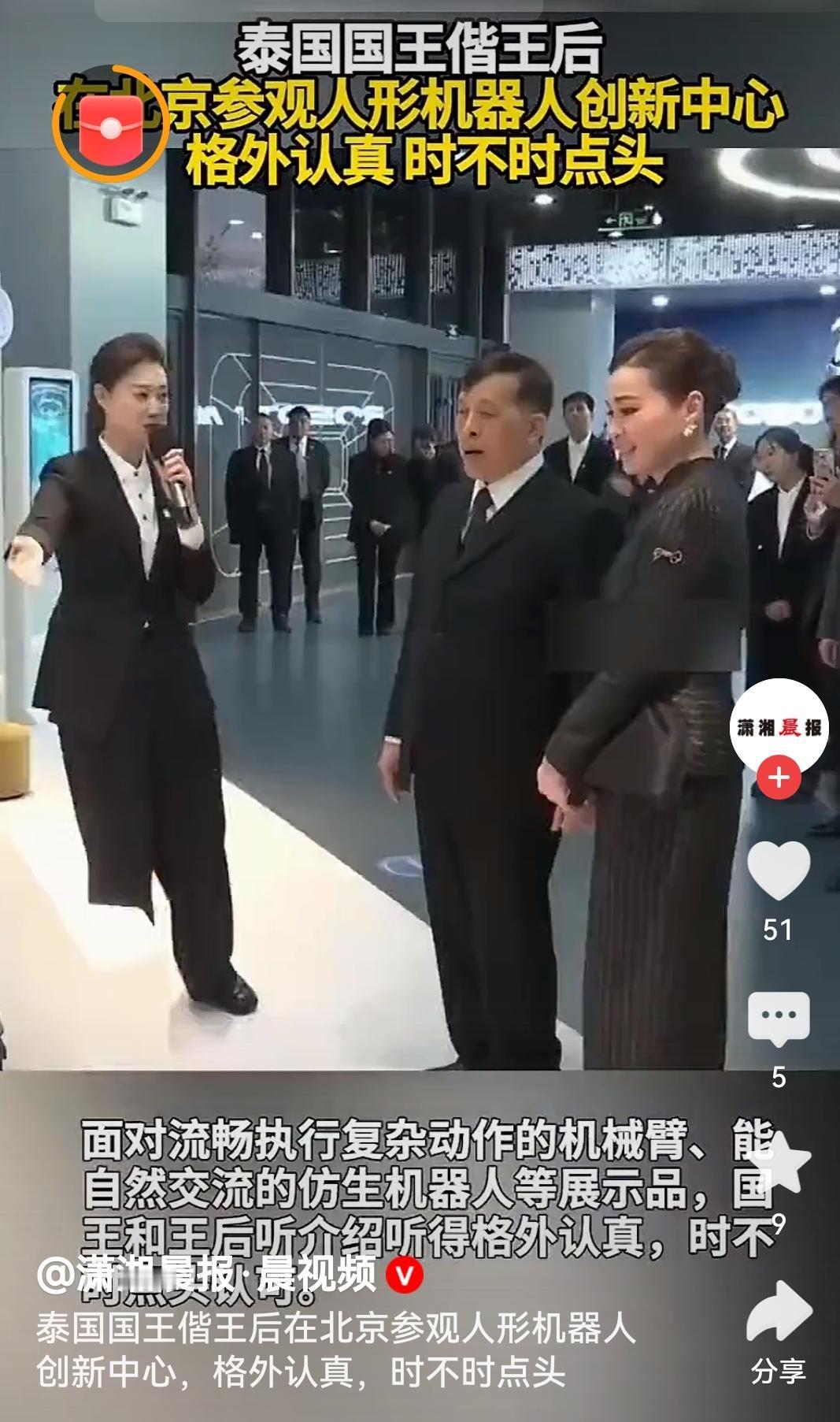 泰王参观北京人形机器人创新中心泰王夫妇参观北京人形机器人中心,专注的神情里满是对中国科创实力的关注~这既是两国友好交流的温馨画面,也让中国前沿科技的魅力被更多看见,期待更多合作火花![烟花][烟花][烟花] 人形服务机器人 评论打卡任务
