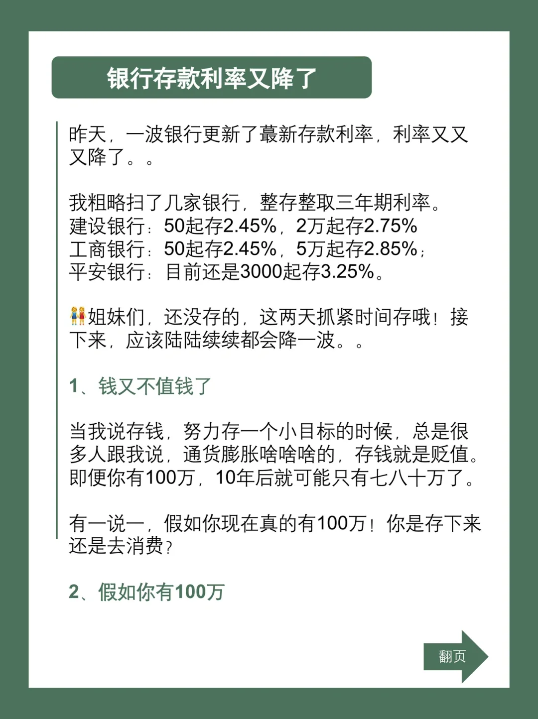 利率下行是趋势,对于我们普通人来说,要存的钱还是要存,并不是说利率降了就不存。