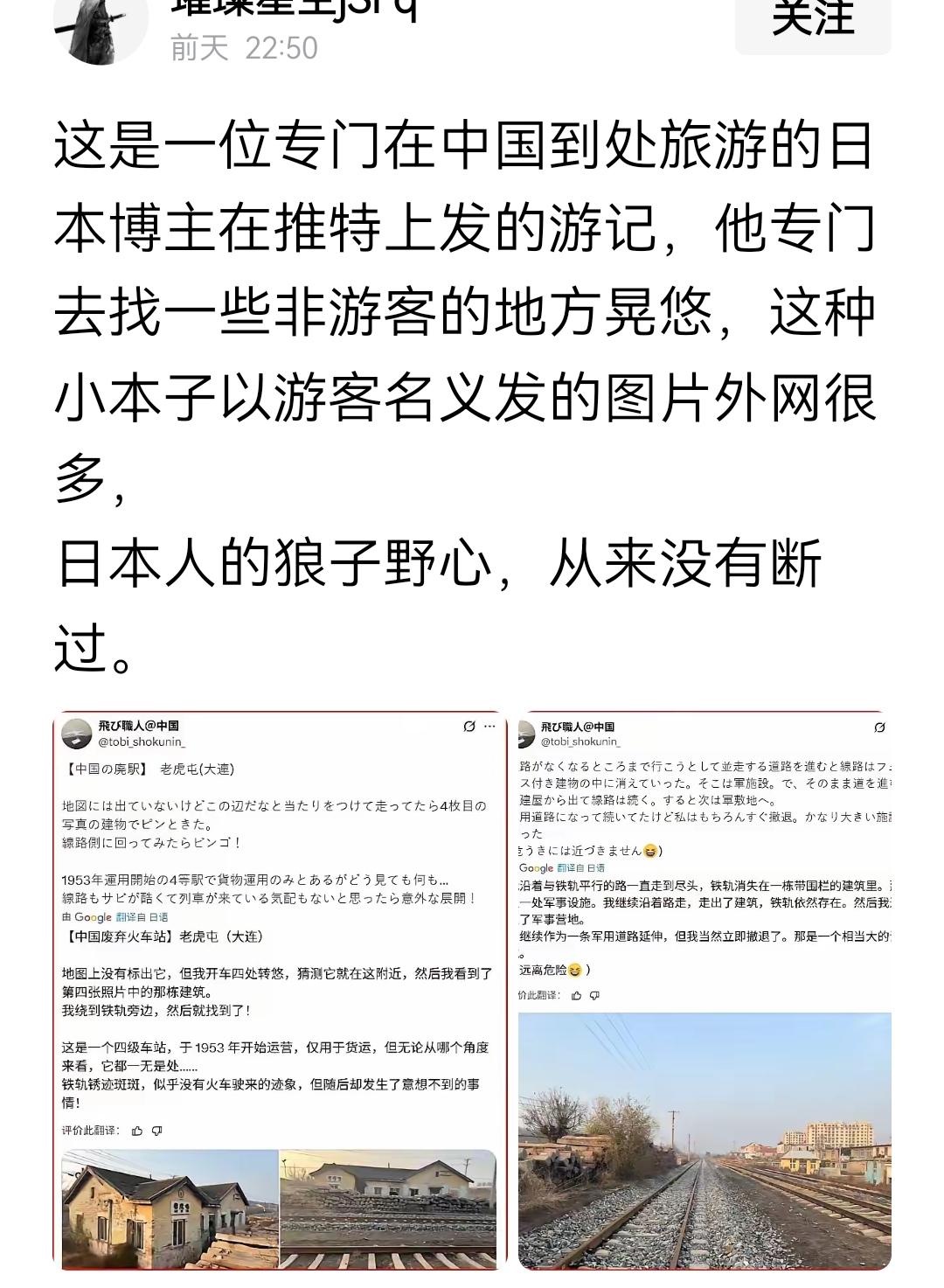 部分国人之愚昧顽劣,劣于上青天!你骂日本人什么都可以,你骂他专门跑中国“非游客”地方晃悠,是“狼子野心”,就显你水平低了!地部分游客、非游客,只分合法、不合法,他去不合法的地方,你逮捕他,你驱逐他,这也不是没有先例,他去合法的地方,你嘟嘟个屁!他去你“非游客”的地方,你也去他“非游客”的地方呀!我在北京长期参加户外,经常有户外驴友去日本野游,走的路线都是“非游客”路线,人家嚷嚷什么了,怕什么了,威胁你什么了?骂日本不是不可以,骂谁都可以,但不能想骂就骂,想怎么骂就怎么骂,别糟蹋你所谓三千年文明!