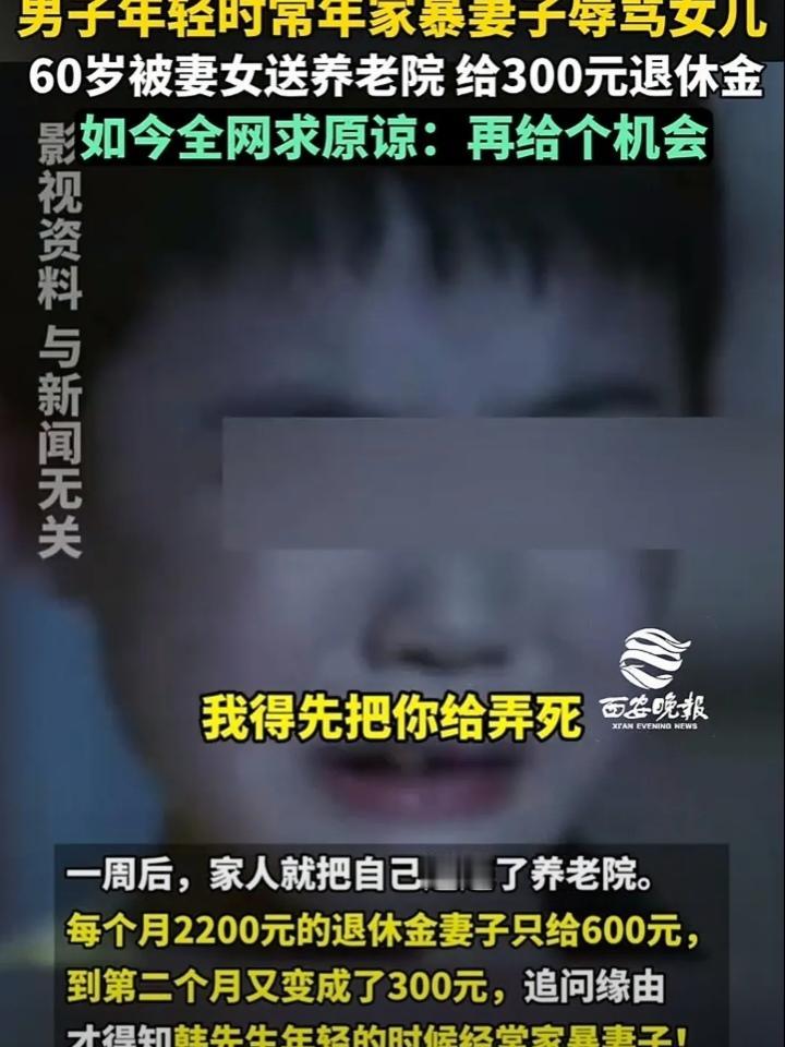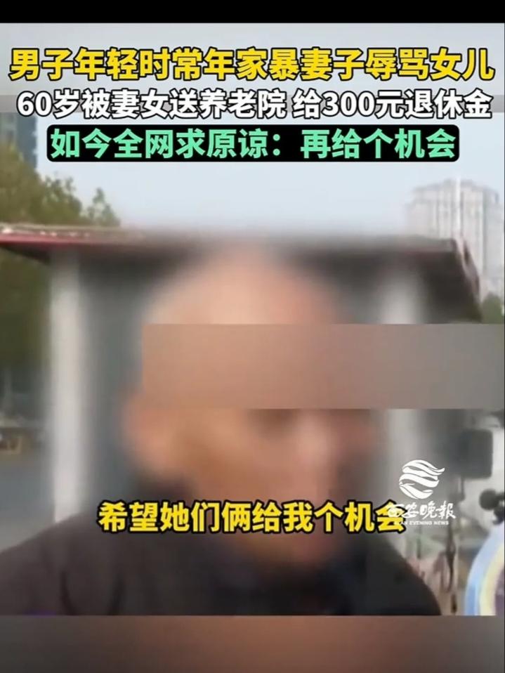 河南许昌,一男子退休金2200,因和妻子拌了几句嘴,妻子和女儿便将他送进了养老院,一开始每月给他600退休金,第二个月降到300,男子不服,找了记者帮忙,不料却打了自己的脸! 男子是小儿麻痹后遗症患者,2020年又得了脑梗,一直坐轮椅。男子满60岁后开始领养老金,每月2200。去年4月初,他和妻子拌了几句嘴,不料一周后,妻子和女儿竟无情地把他送进了养老院,刚开始给他600养老金,后面只给300养老金了。 男子不满妻女的行为,找来记者调解,在记者追问下才道出实情。原来妻女这样对待他是有原因的。男子年轻时经常家暴妻子,喝醉酒了拿着酒瓶子就往妻子头上砸,也经常辱骂女儿,还扬言要弄死母女俩。 女儿从记事起,就看到男子家暴自己的母亲,现在女儿长大了,能帮母亲出头了,男子也老了,坐上了轮椅,自然没好果子吃了。男子如今面对镜头忏悔,全网求妻女原谅,表示自己以后再也不家暴妻子,不会再骂妻子一句,希望妻子和女儿给他一个机会。 在我看来,男子这样的人不值得原谅,妻女能把他送到养老院,已算是仁至义尽,让他后悔去吧! 年轻时的拳头有多狠,老来的退路就有多悲凉!当初家暴妻子的时候,男子就应该想到这一点! 这可不是什么无情无义的家事,说白了就是种什么因,得什么果。年轻时把拳头对准枕边人,拿酒瓶砸向妻子,张口就辱骂女儿,甚至放狠话要弄死母女俩,那些年的嚣张跋扈,早就在女儿心里刻下了疤,也让妻子熬尽了所有温柔。 现在他老了、残了、坐轮椅了,没了欺负人的本事,才想起忏悔求原谅,哪有这么便宜的事?人生没有白走的路,每一步善恶都算数,当初有多狠心,现在就该有多狼狈。妻女没把他扔在街头不管,还送进养老院给口饭吃,真的已经仁至义尽。别怪别人心狠,要怪就怪自己年轻时造的孽太多。各位读者你们怎么看?欢迎在评论区讨论。