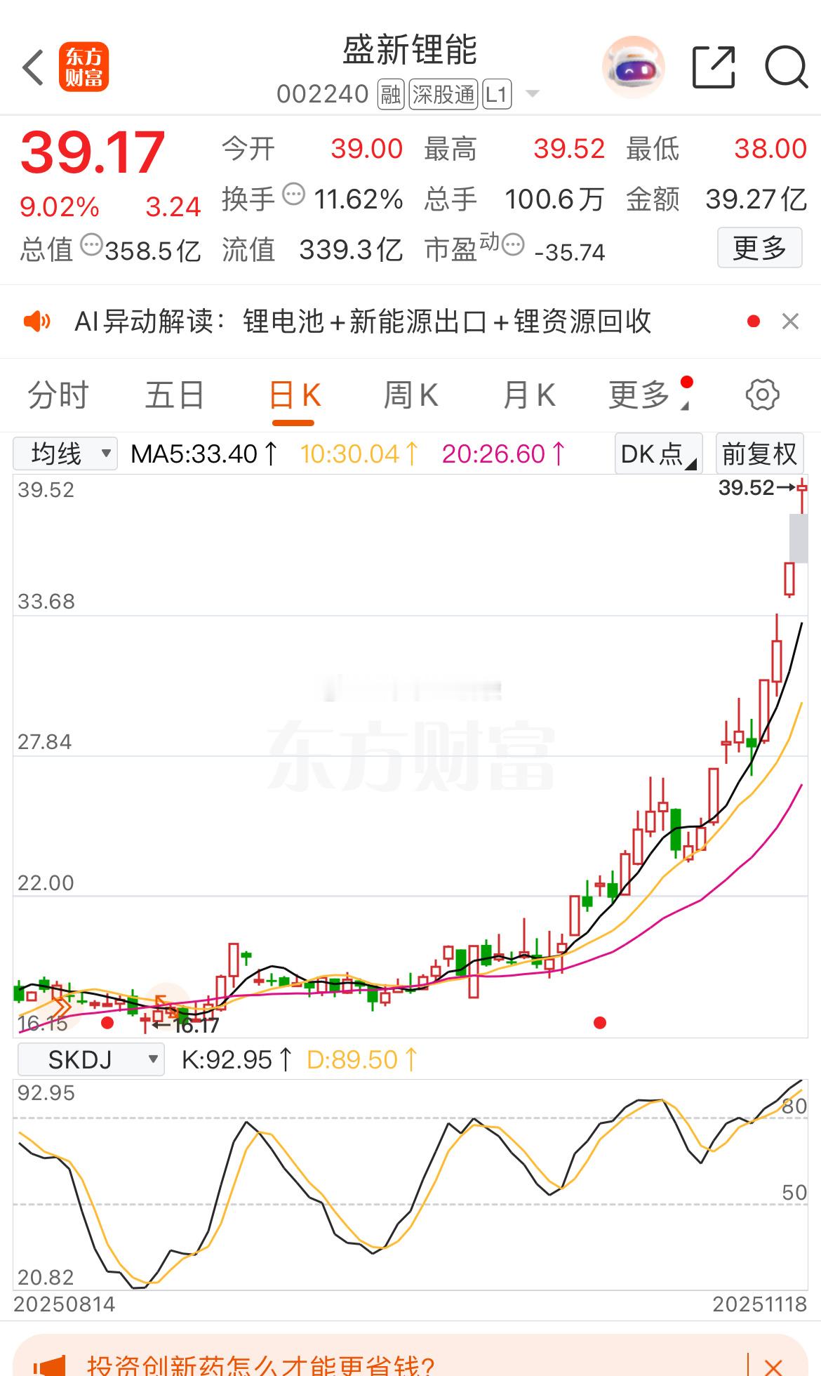涨个没完盛新锂能 sz002240[股票]