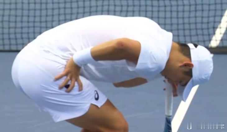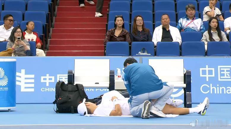 全运会网球男单首场1/4决赛(北京)商骏程vs(浙江)布云朝科特比分3-4,布云多一个破发首盘小商就叫伤停商毅在观众席一脸关切不会又..................
