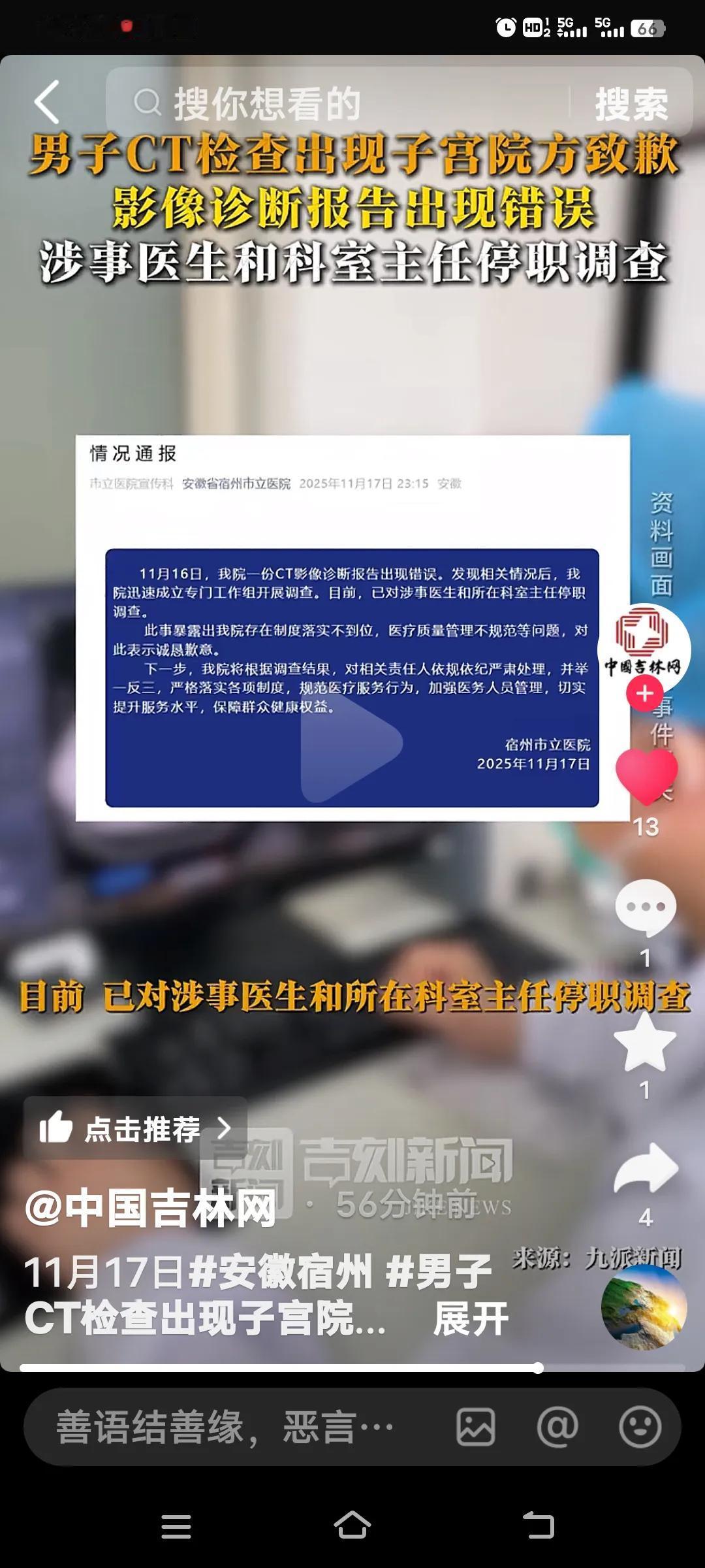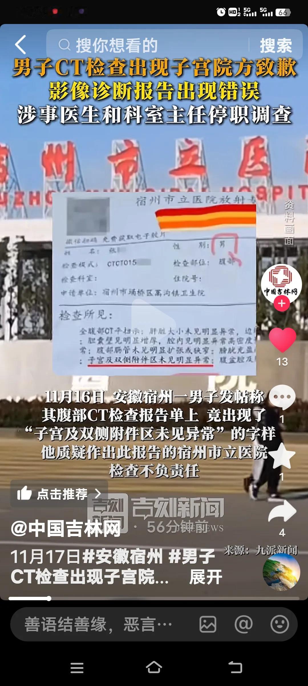 这简直就是一场“国际笑话”!安徽宿州有一男子发帖称,自己的CT检查报告单上竟赫然写着“子宫及双侧附件区未见异常”。他不禁质疑,医院工作怎会如此不负责任。 这就是大家口中的三甲医院?实在让人匪夷所思!目前,涉事医院和科室主任已被停职调查。有网友质疑,必须彻查到底,这医生是不是靠走后门入职的。说到底,即便真是机器出了问题,这样的结果也不该拿给患者看,影响太恶劣了,这下医院可是“声名远扬”了。 这么低级的错误都能犯,最起码患者是男性啊!要是查不清楚,让患者再查一次便是。出现这种情况,怎能不让人议论纷纷?医院的工作都难以正常开展了! 医院ct报告 子宫内异症