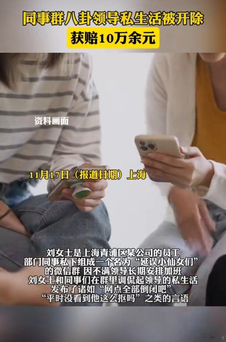 女子在“延误小仙女们”群里面八卦领导私生活,给领导造黄谣,客观上给领导和公司带来负面影响。这样的恶劣行为不开除还留着过年啊?最离谱的竟然是这样的人竟然还能让公司赔偿10万块。真的涨见识了。