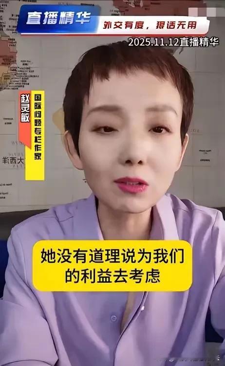 网红赵灵敏在抖音上发视频说,要中国人体谅高市早苗,多从对方立场考虑,还说高市早苗