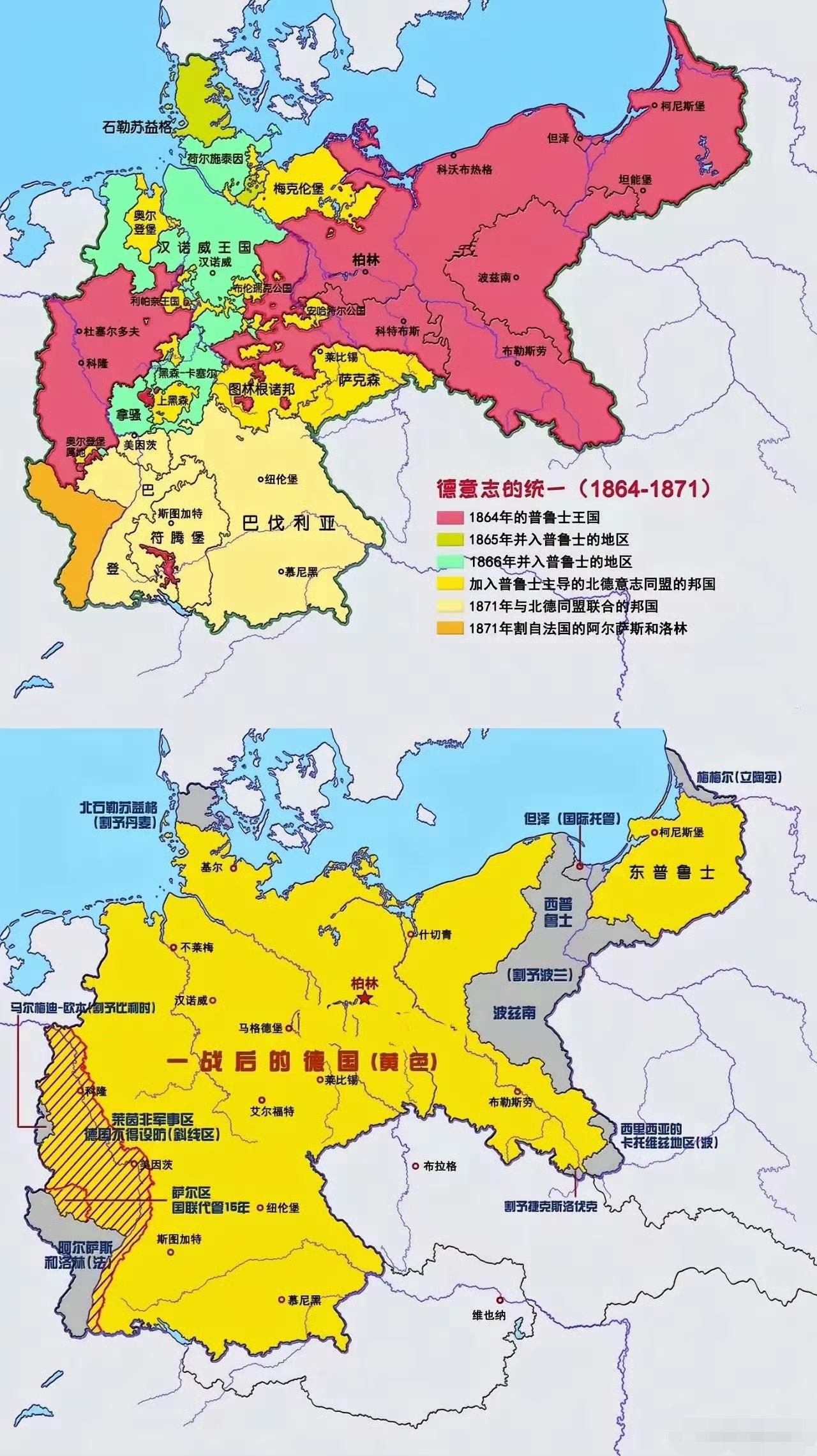 历史,德国搞了两次世界大战,结果国家被越搞越小。 假如德国没发动两次世界大战,保留一战前的版图,按他们强大的工业能力,现在会有多强? 恐怕,欧洲大陆会被德国主导,全球事务也离不开德国,美国基本上没多少话语权,充其量也就是一个区域性强国吧?也就是说,要是德国没点火两次世界大战,还留着它一战前那个庞大的版图,今天的世界格局,真得彻底洗牌。