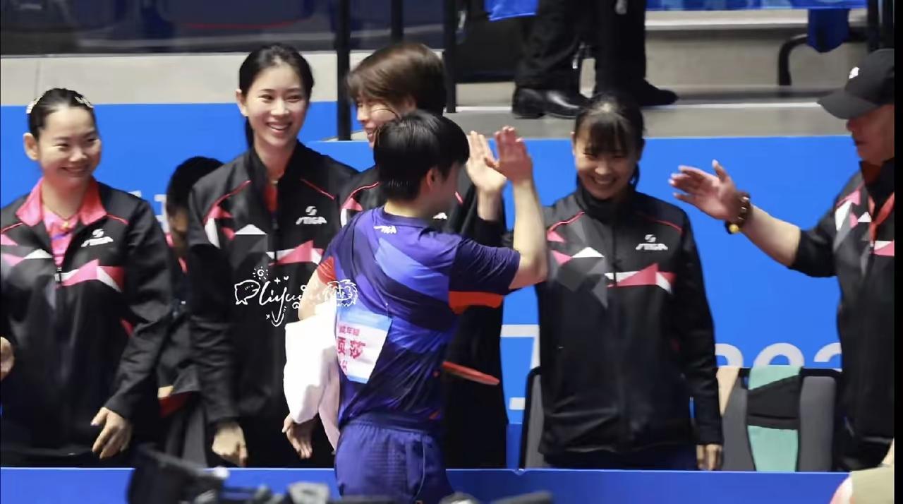恭喜河北队3:1战胜辽宁队,晋级半决赛! 莎莎今天状态非常好,先是3:0战胜刘斐,然后又以3:0战胜陈幸同,一人独得两分,太棒了。为河北队拿下另外一分的是佳佳,她不仅为自己高兴,看着为河北队独拿两分的莎莎,她笑得像一朵花似的,更是高兴,多好的佳佳! 值得一提的是,今晚女团半决赛,河北队迎战黑龙江队,莎莎大概率又要在团体赛上和曼昱相遇了,非常令人期待!
