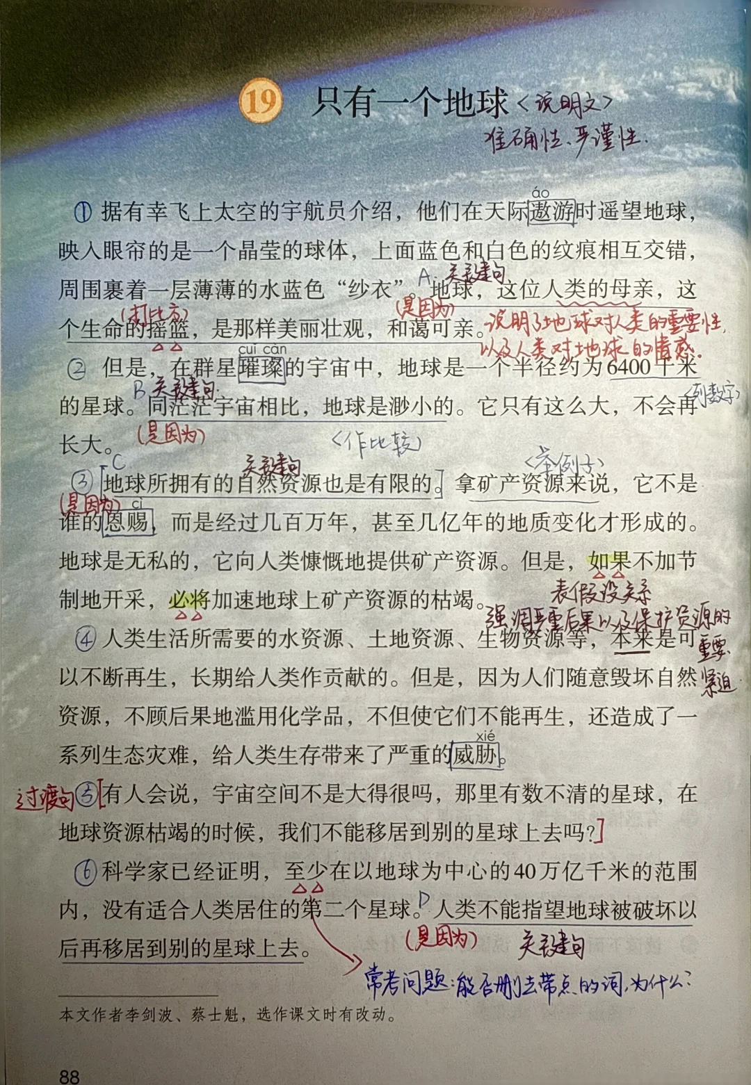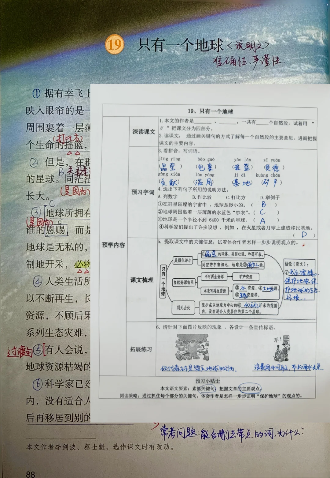 六上语文|第19课《只有一个地球》备课笔记