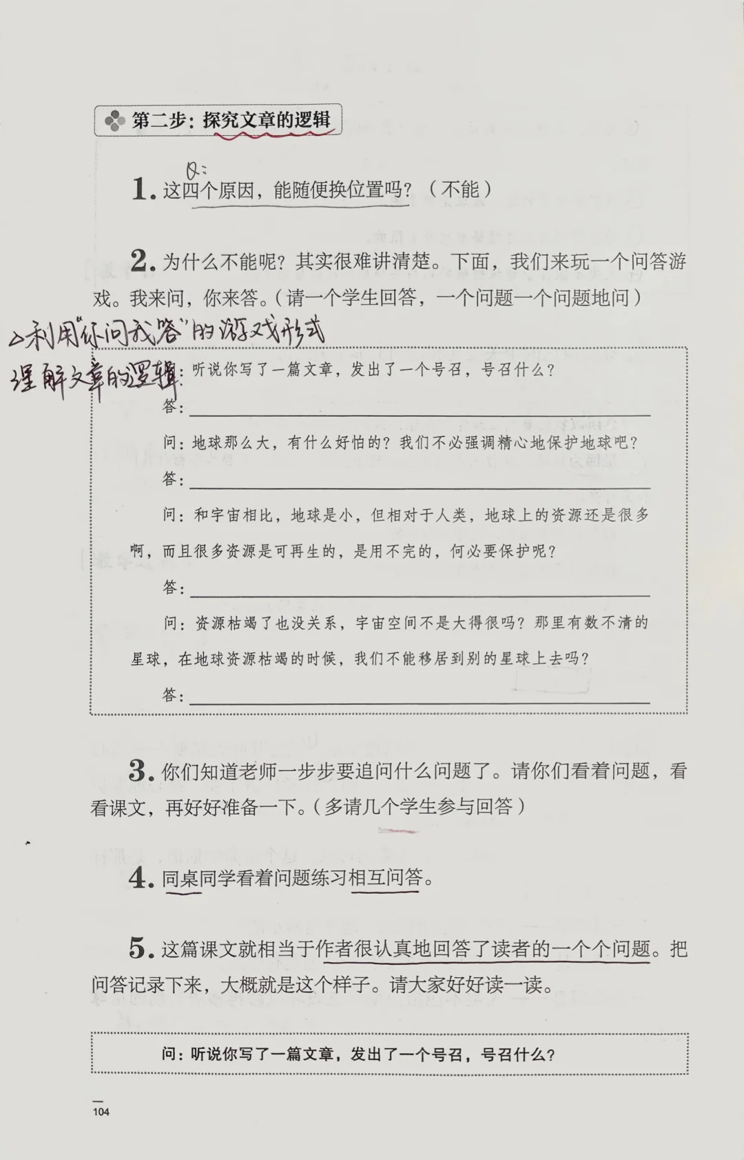 🌟蒋军晶老师的教学设计大亮点: 利用“你问我答”的形式帮助学生理解文章安排的逻辑,同时也理解了作者是如何一步一步的出最后结论中的因果关系。学生很容易接受,这样设计也很有趣味!