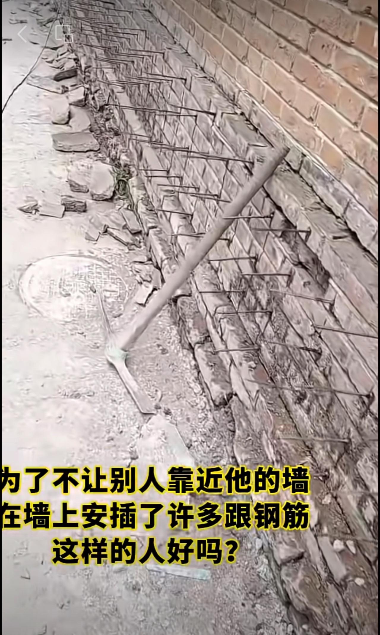 为了不让别人靠近他的墙, 在墙上安插了许多根钢筋, 这样的人好吗?