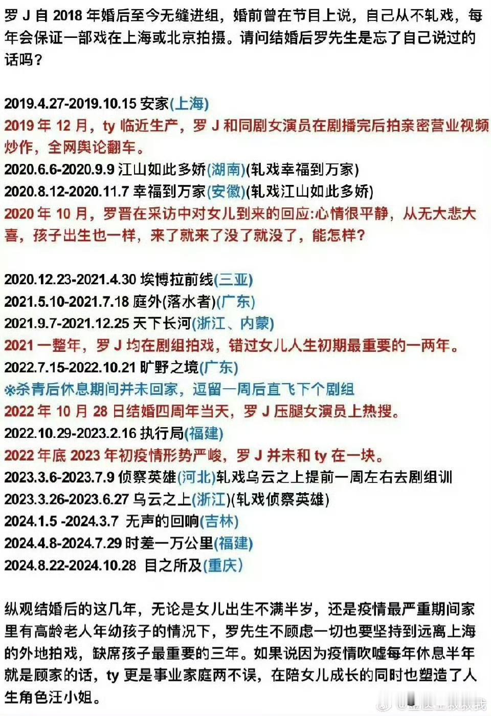 唐嫣又上热搜 这次不是因为王家卫说她装 而是因为她和罗晋婚姻有变! 我印象中他俩不是一直很恩爱吗? 虽然不愿相信,但结婚的女星如果突然频繁开始工作,又不秀恩爱了,那多半有可能真的离了! 还有网友列出罗晋工作安排,18年开始无缝进组,一直在组里拍戏!都没回过家! 越扒越感觉传闻不是空穴来风。 唐嫣